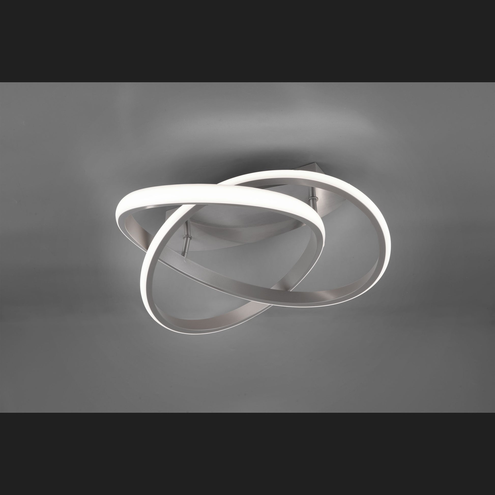 The COURSE ceiling light can set stylish accents in your living area and give your living space that certain something. COURSE consists of two rings surrounded by an acrylic cover. The ceiling light is ideal for optimally illuminating certain areas. The luminaire also impresses with its practical additional functions. The integrated SWITCH dimmer can be used to select between three different brightness levels using a conventional light switch. By graduating the light intensity from 100% to 50% and 25%, the light can be used to create different lighting moods. The matt nickel finish gives the ceiling light a modern design that can be found in numerous furnishing styles. In addition, the luminaire features modern LED technology, which is characterised by high light quality and energy efficiency. Compared to conventional halogen lamps, up to 80% of energy costs can be saved. In addition, LED light sources have a long service life, produce less heat and protect the environment.