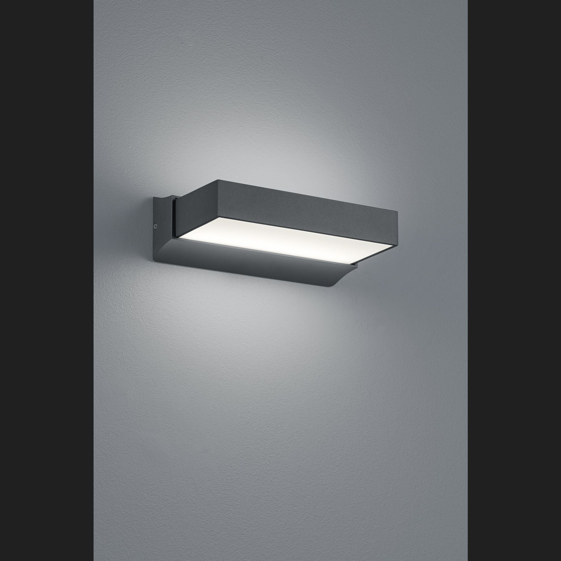 The CUANDO outdoor wall light impresses with its striking design and high-quality materials. The luminaire is made of die-cast aluminium and is ideal for outdoor use thanks to its IP54 protection rating. Thanks to the upward and downward light emission, the luminaire provides pleasant and effective lighting at the house entrance, balcony or patio area. The wall light has a width of 23 cm, a height of 7 cm and a projection of 14 cm. The anthracite-coloured design can be combined in a variety of ways and ensures a modern appearance. In addition, the luminaire features modern LED technology, which is characterised by high light quality and energy efficiency. Compared to conventional halogen lamps, up to 80% of energy costs can be saved. In addition, LED light sources have a long service life, produce less heat and protect the environment.