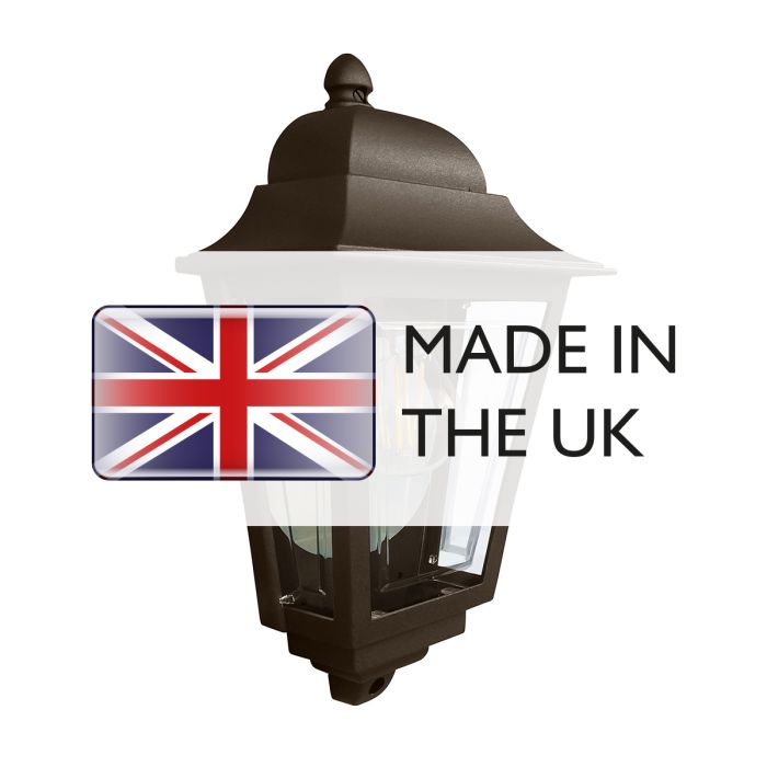 With an almost regal quality, the traditional Deco Lane half wall lantern is sure to suit many classic style buildings. Cast in solid aluminium with a mirrored backplate for maximum light output, this lantern is offered in a unique array of finishes. Choose from traditional Black or Bronze, or create a striking contrast against dark walls with the Cream finish, or boldly stand out with the brightly coloured Green and Red finishes. This robust lantern is built to last with Clear Polycarbonate panels. Made in England.