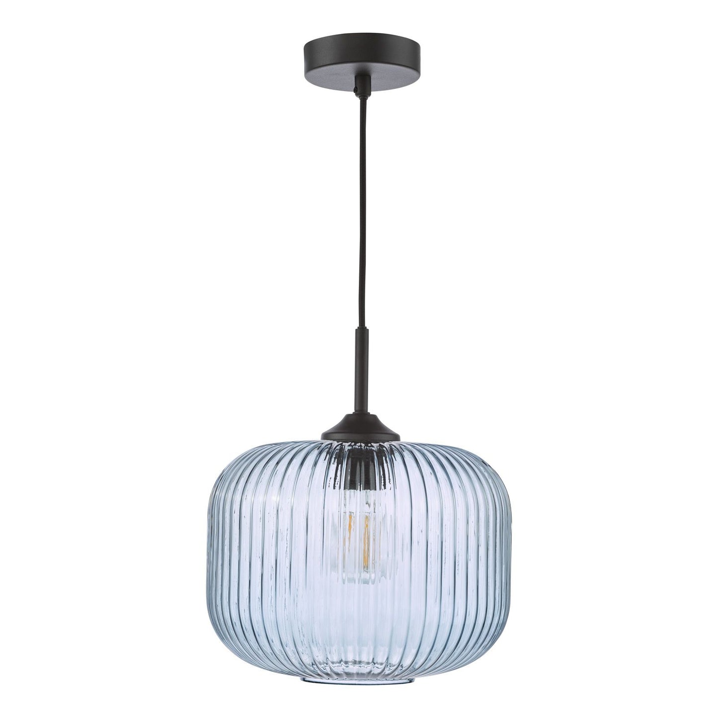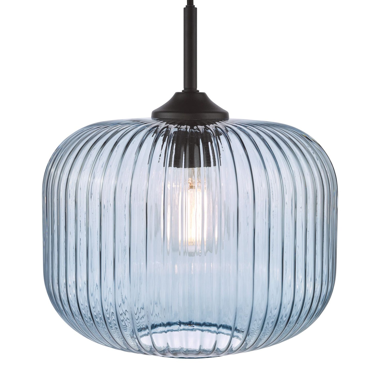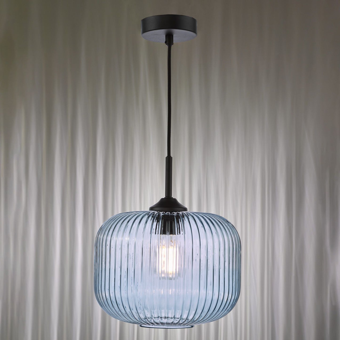 Demarius Pendant Matt Black and Blue Ribbed Glass