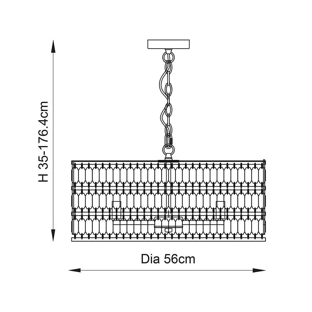 The Eldora pendant light with hexagonal detailing will give modern interiors a designer look with glistening gold light reflections. Features height adjustable chain rope.