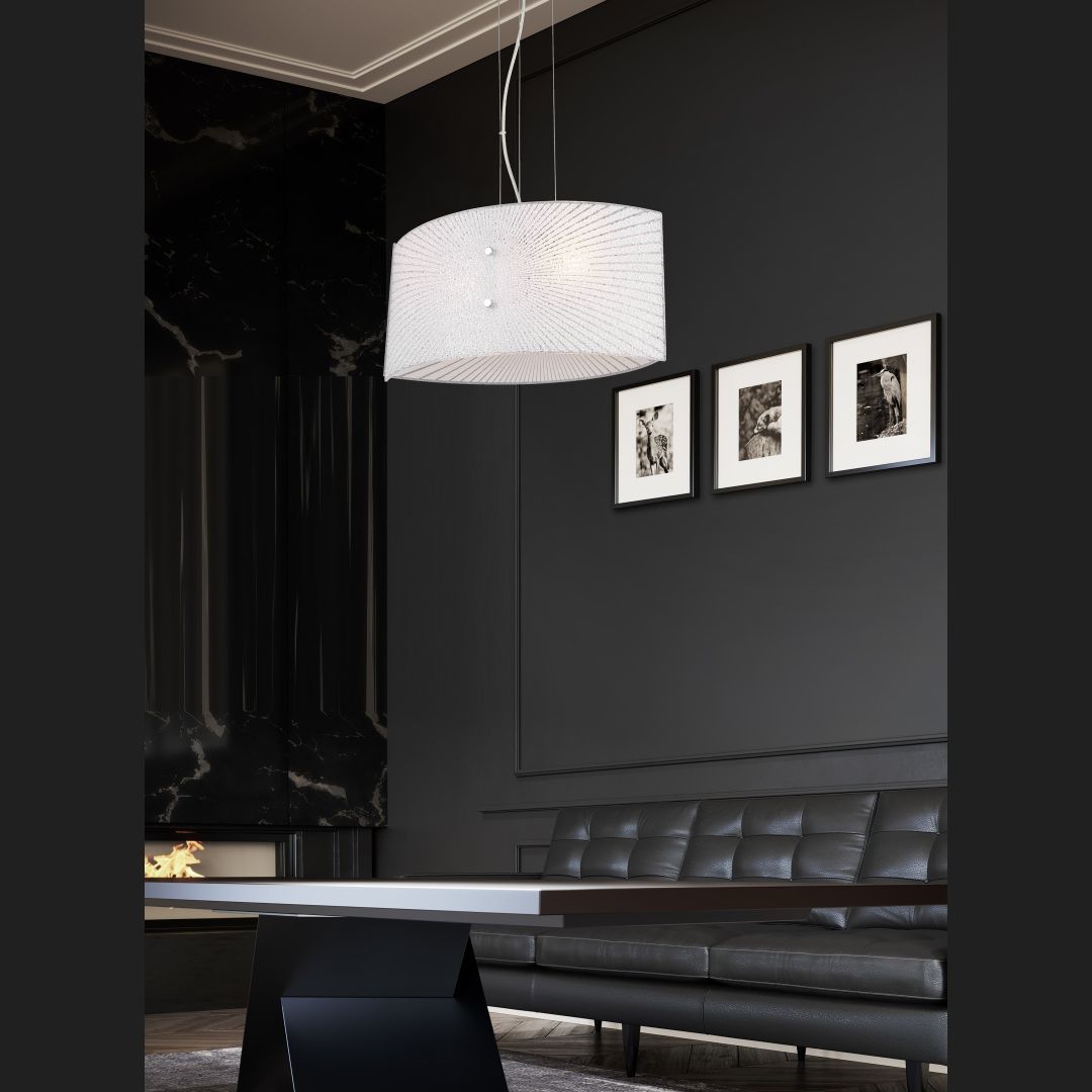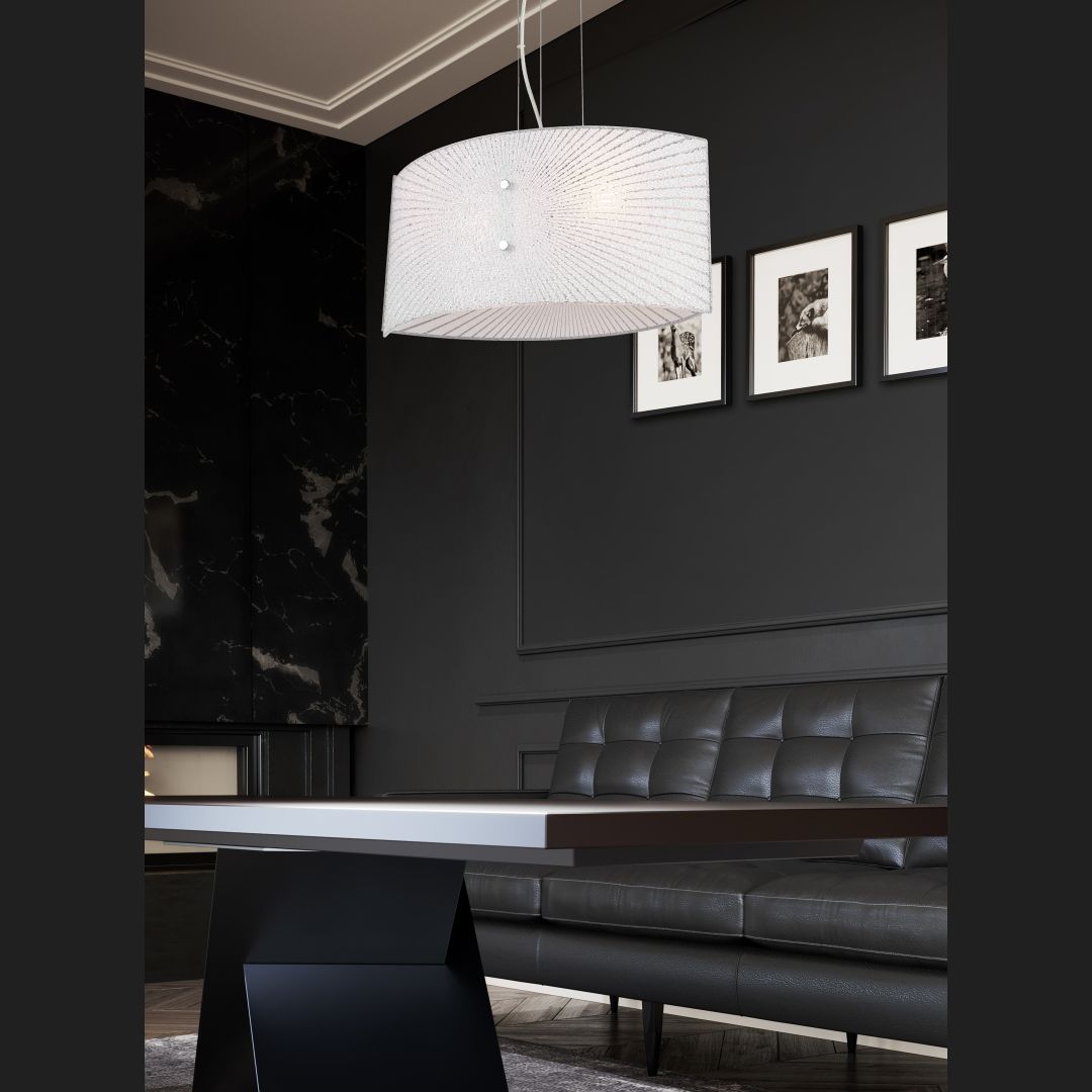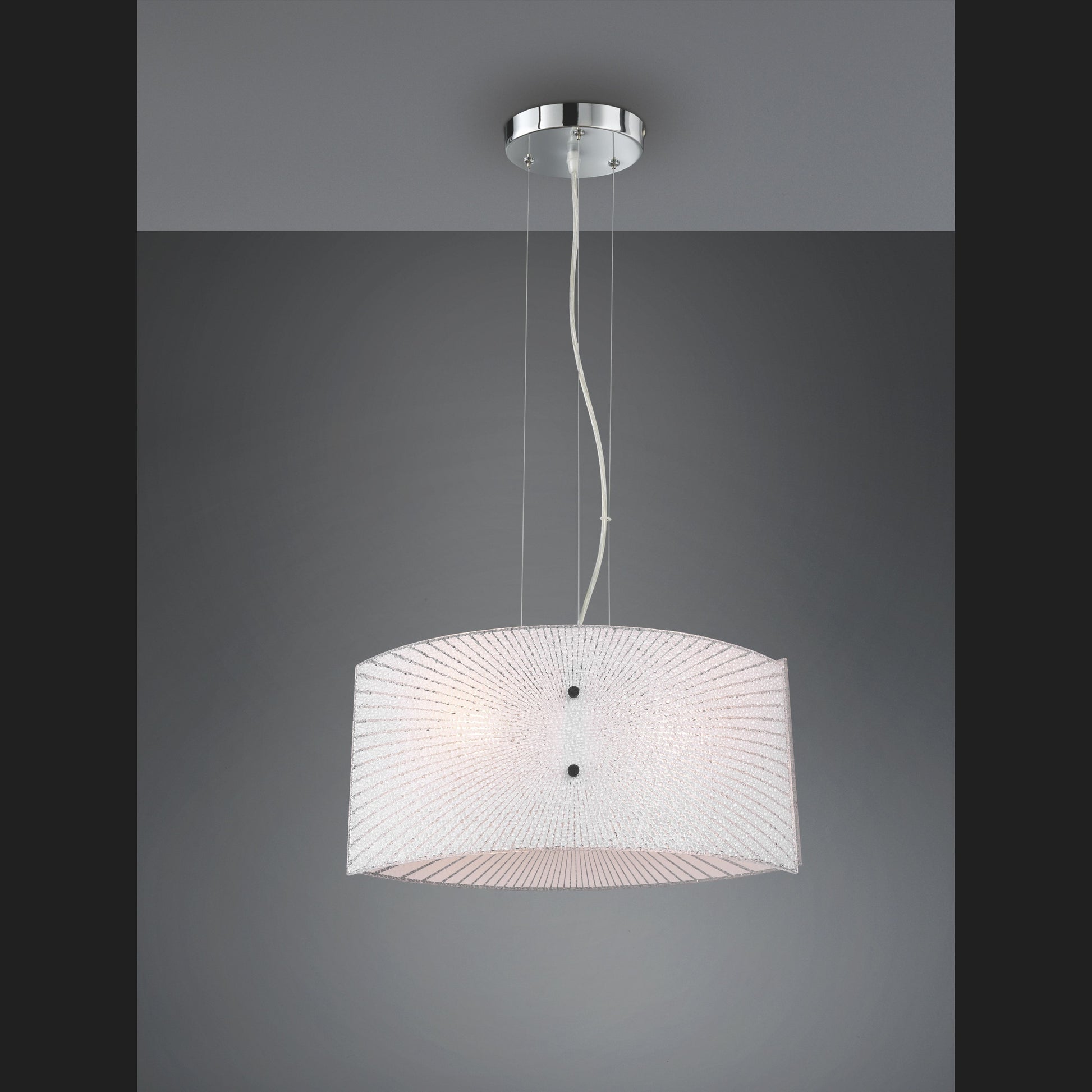 The ELISA pendant light provides homogeneous illumination of rooms and surfaces and impresses with its modern design. With its elegant pattern, the beautiful glass decor is an eye-catcher in any living concept and creates a cosy and harmonious ambience with individual lighting accents. Thanks to the combination of the white patterned glass and the chrome-plated body, the ELISA luminaire can be combined with other different colour concepts, making it wonderfully easy to integrate into your home. For energy-saving lighting, it is recommended to use an LED illuminant. These are an optimal alternative to conventional halogen lamps and stand for a high quality of light and energy savings of up to 80%. In addition, LED lamps help you benefit from a long service life, low heat generation and at the same time protect the environment.