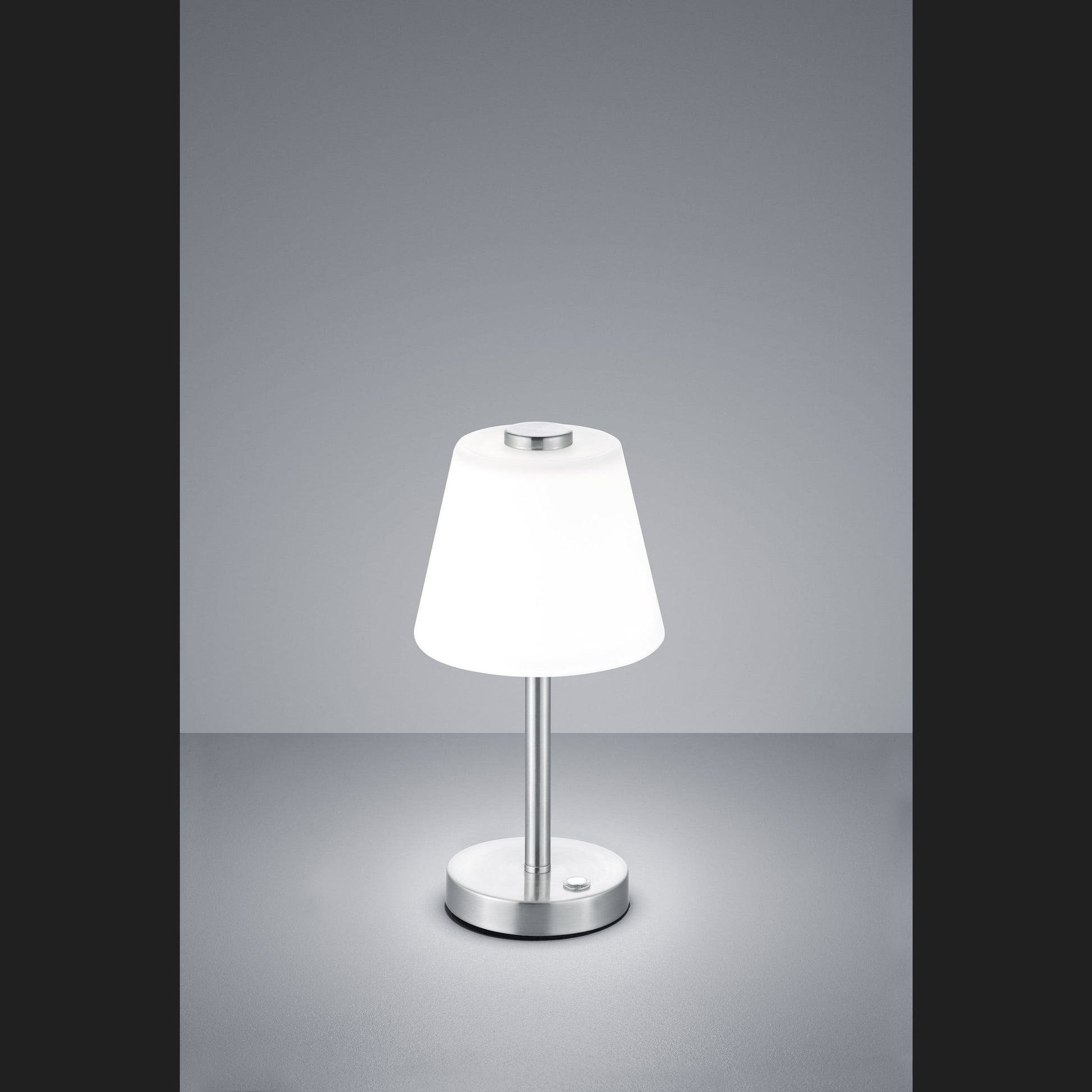 The small table lamps in the EMERALD series convey simple elegance and impress with their timeless look. The brightness can be selected in stages using the integrated 4-way touch dimmer. The table lamp is suitable as a supplementary light next to the sofa or as a lamp on the bedside table next to the bed. The table lamp has a height of 29 cm and a diameter of 15 cm. The luminaire in matt nickel is fitted with white glass and ensures glare-free and shadow-free vision. In addition, the luminaire features modern LED technology, which is characterised by high light quality and energy efficiency. Compared to conventional halogen lamps, up to 80% of energy costs can be saved. In addition, LED light sources have a long service life, produce less heat and protect the environment.