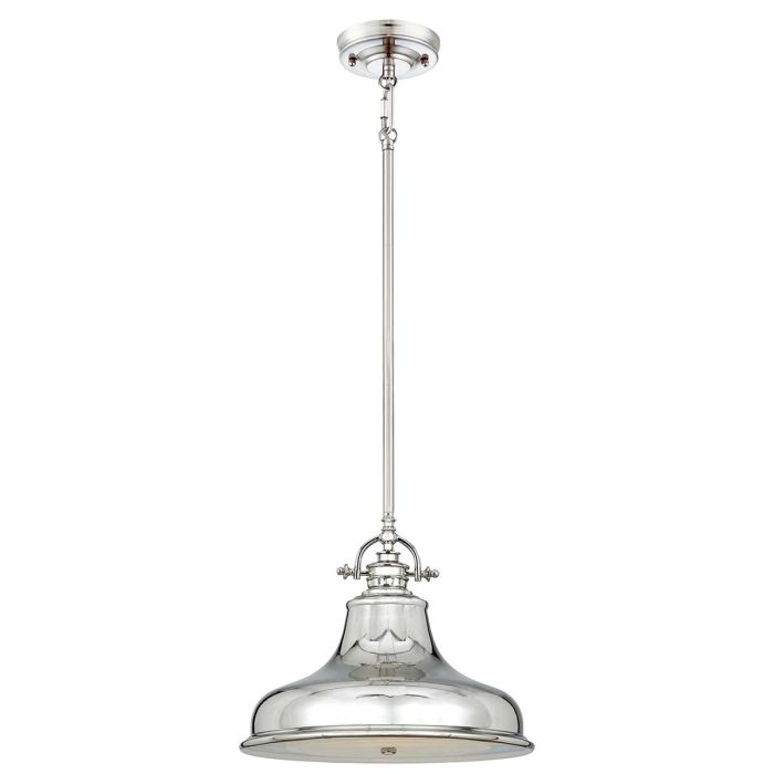 Emery is a classic Americana metal pendant series which adds a nostalgic flair to any kitchen island or dinner table. The single medium sized pendant is a is available in an Imperial Silver finish. It includes a prismatic lens diffuser for a soft, even light.