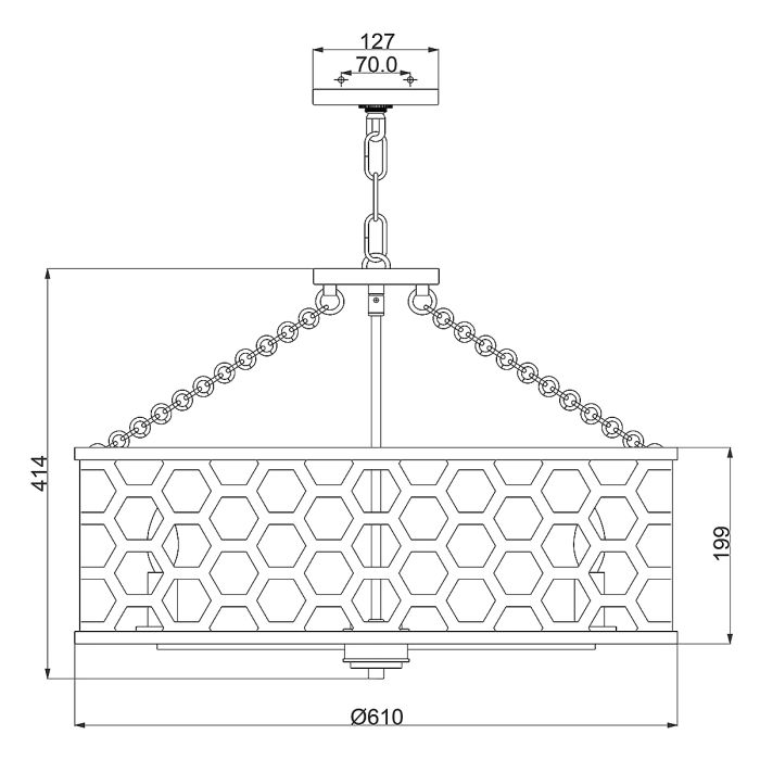 - Product Dimensions: H: 414mm D: 610mm Min/Max Drop: 509mm - 3512mm