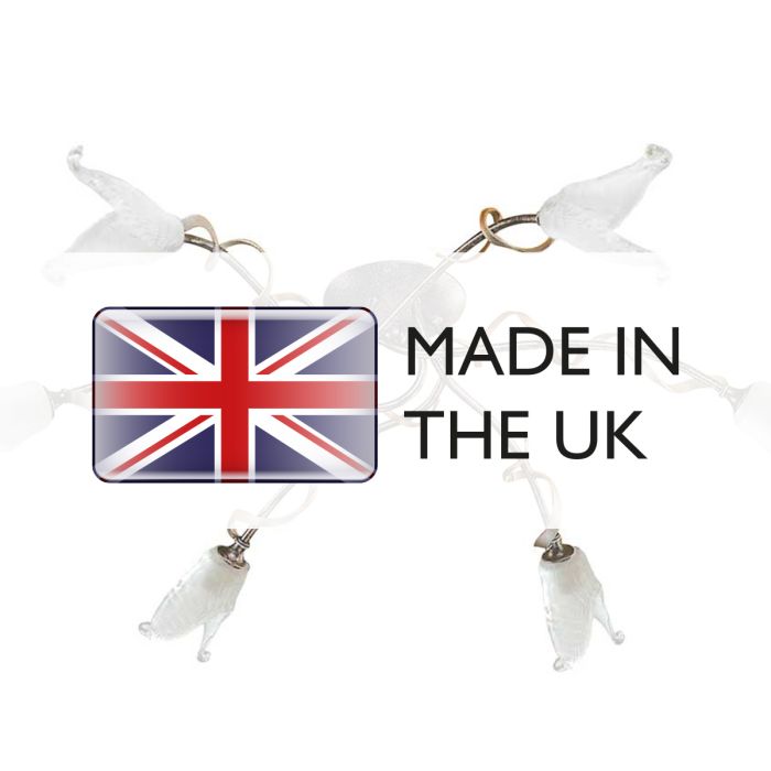 RETIRING COLLECTION MODEL - CHECK STOCK AVAILABILITY. The LED Fly collection is a delicate family, finished in an unusual Black/Silver & Gold effect detail. The 3 light and 6 light flush fitting are excellent for low ceiling situations. Made in England.