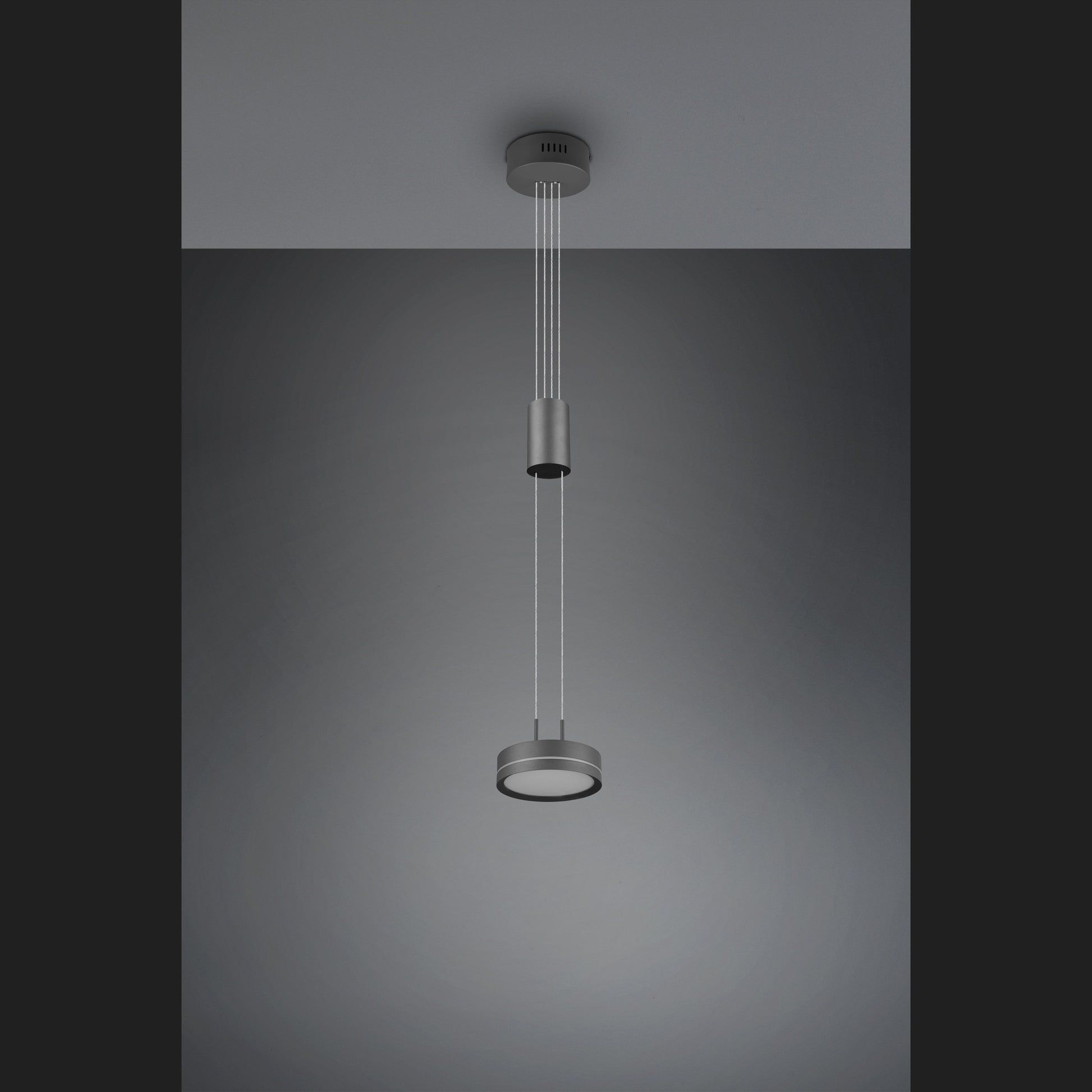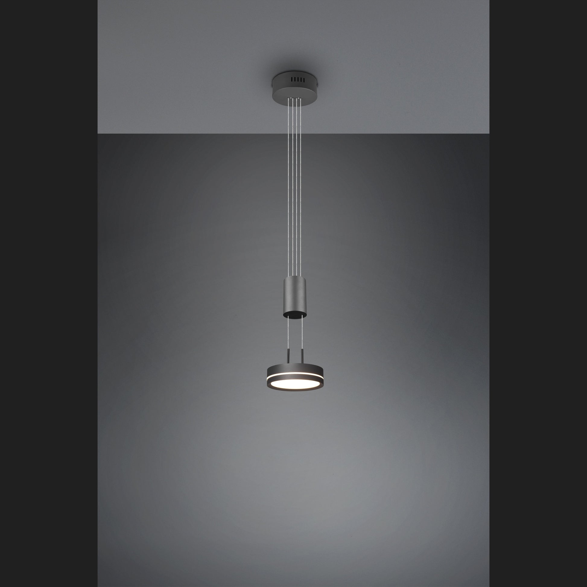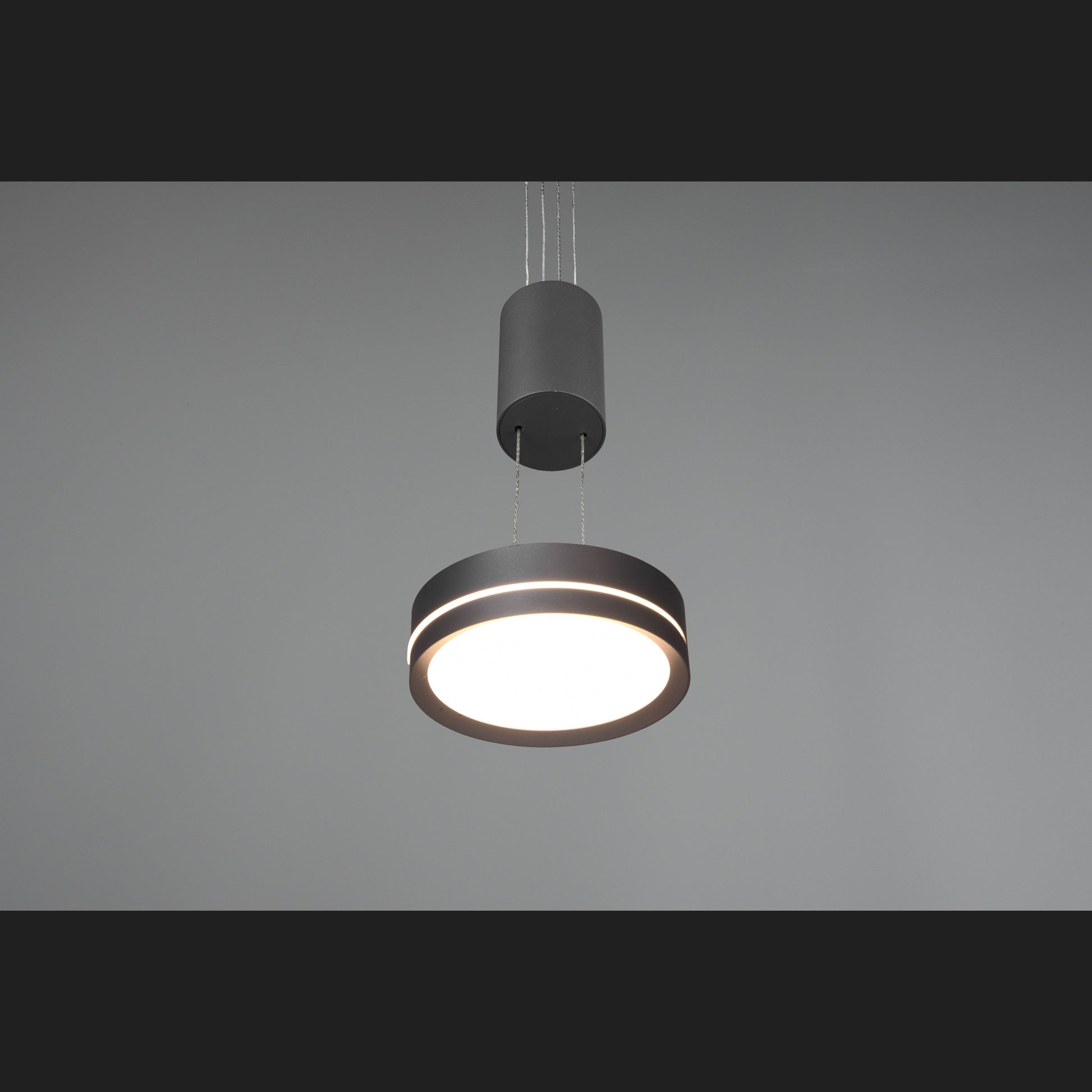 Practical, functional and stylish! The FRANKLIN luminaire impresses with its modern, futuristic look. In addition, the pendant lamp can be easily adjusted in height, making it ideal for the living area. Perfect setting: Several lights hung in a line over an oblong dining table or kitchen counter. The integrated SWITCH dimmer allows different brightness levels and provides suitable lighting moods. Thanks to the colour design in anthracite, the luminaire sets modern accents and can be combined with existing furniture. In addition, the luminaire features modern LED technology, which is characterised by high light quality and energy efficiency. Compared to conventional halogen lamps, up to 80% of energy costs can be saved. In addition, LED light sources have a long service life, produce less heat and protect the environment.