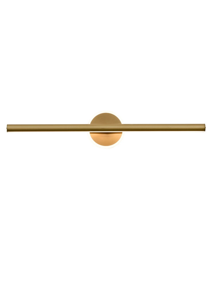 Aged brass finish LED wall light with two light sources one of which is the illuminated backplate. Can be mounted horizontally or vertically. Rated IP44. Non-dimmable.