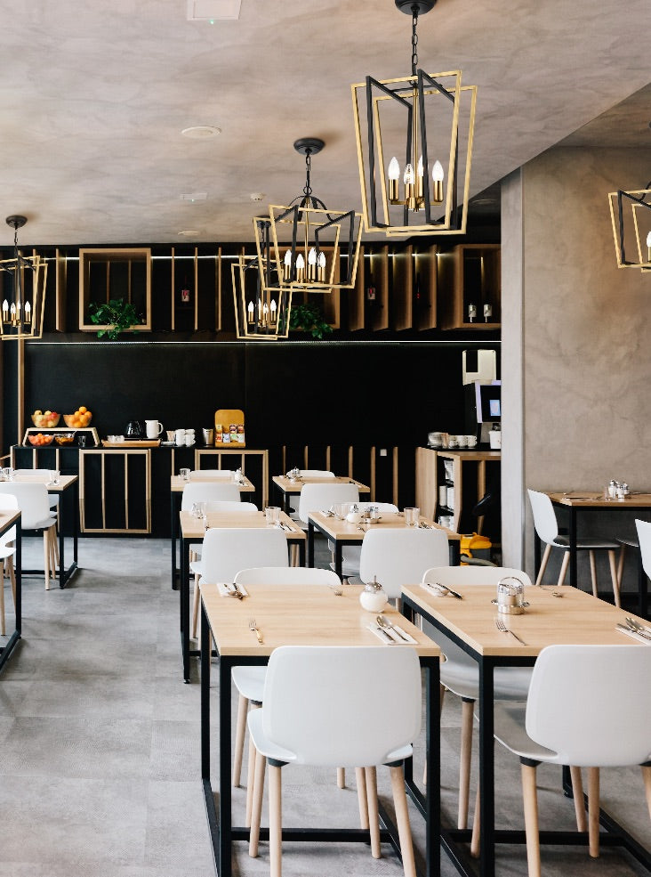 Contemporary style open metalwork lanterns in matt black and aged brass finish.