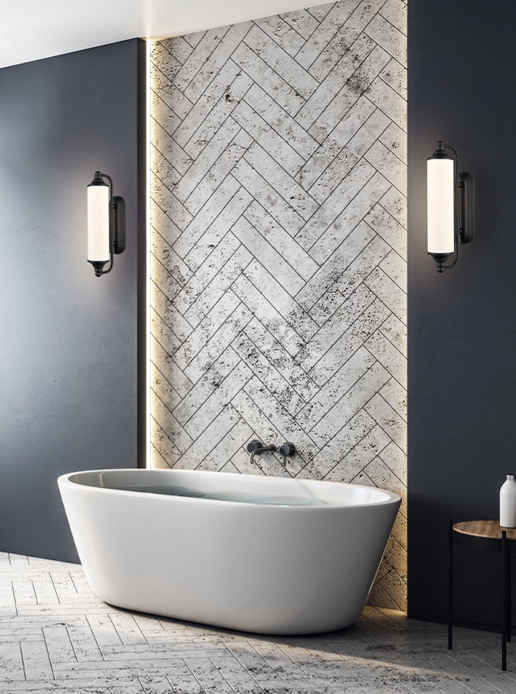 In matt black finish with a matt opal glass.