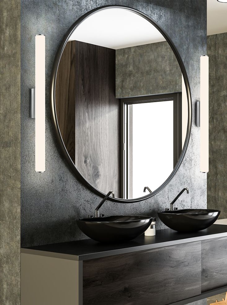 Chrome finish wall light with opal acrylic diffuser available in three sizes. These can be mounted horizontally or vertically. Dimmable with a trailing edge dimmer. Suitable for use in every bathroom zone except zone 0. Rated IP44.