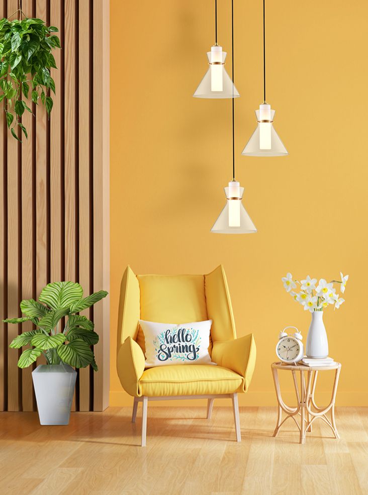 Clear glass pendant with opal glass diffuser and a decorative ring in aged brass finish on black braided suspension.