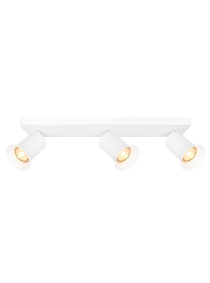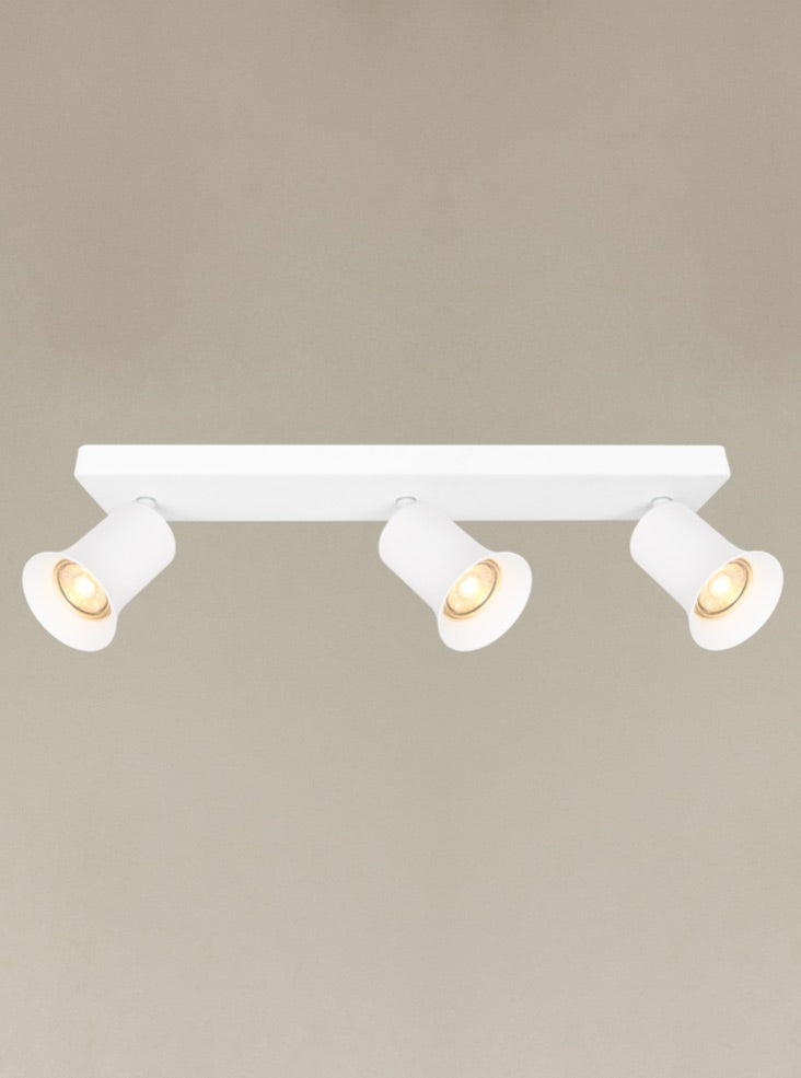 Matt white finish fully adjustable spotlights shown with white finish sleeves. This range comprises five colours and two designs of interchangeable sleeves.