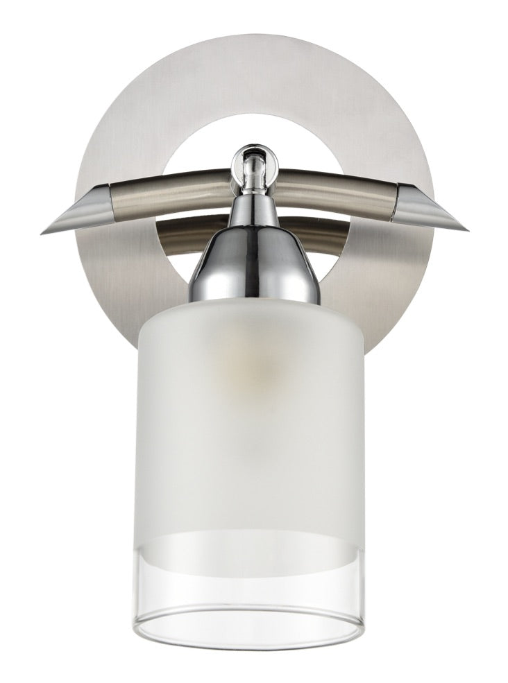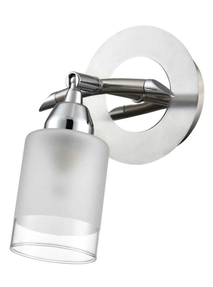 In chrome/satin nickel finish with a switch and clear edged acid glass.