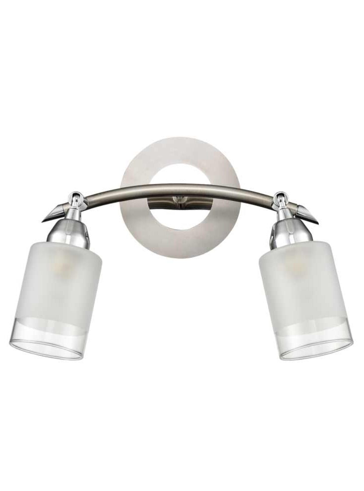 In chrome/satin nickel finish with a double switch and clear edged acid glasses.