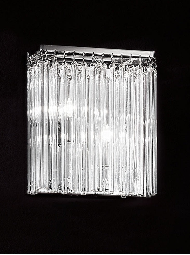 Smooth glass rods suspended from a chrome fnish wall fixing. LED G9 lamps should be used. Suitability for dimming will depend both on the lamp and switch used.