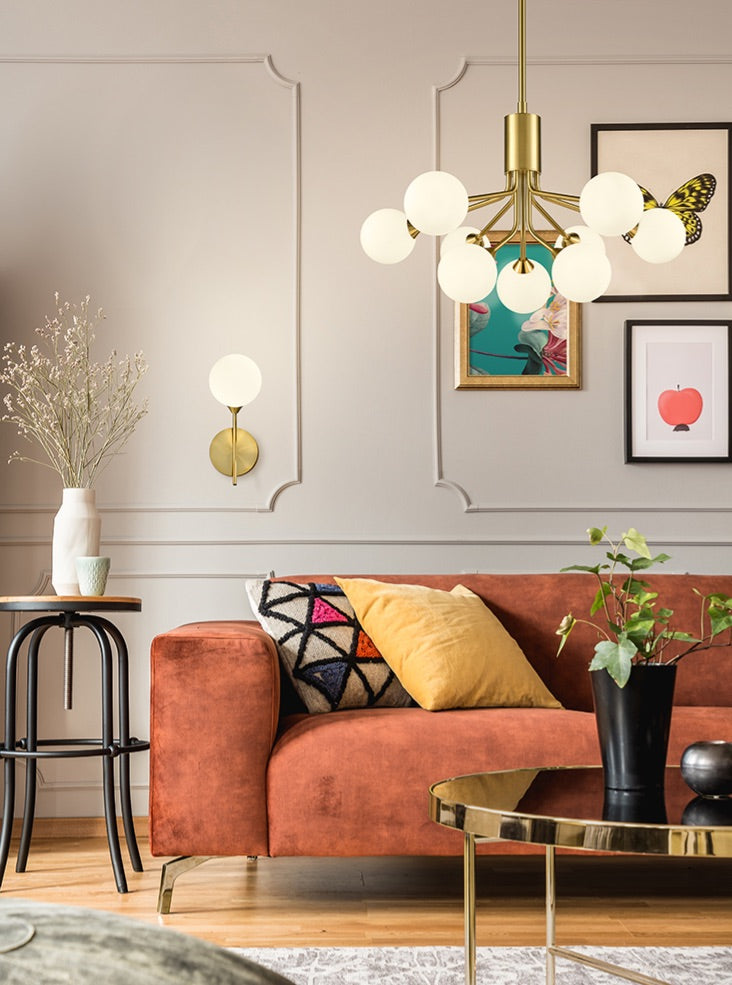 Cosmic 1 light wall bracket in antique gold with matt opal glass