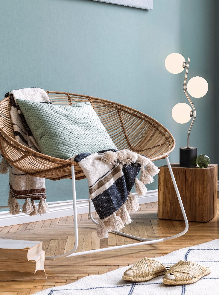 Satin nickel finish 3-light table lamp with opal glass spheres and black base. There is an in-line switch on the cable.