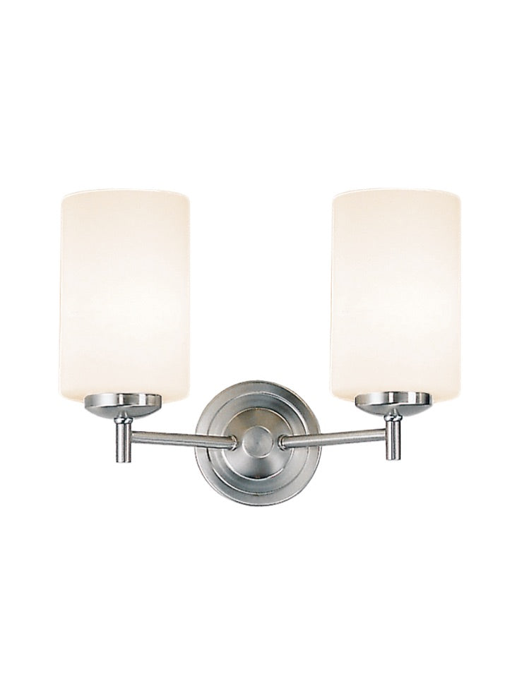 Satin nickel finish double wall bracket with opal cylinder glasses
