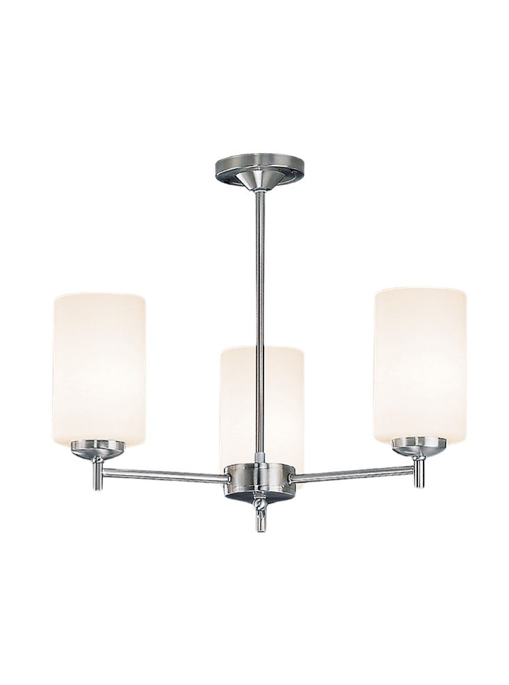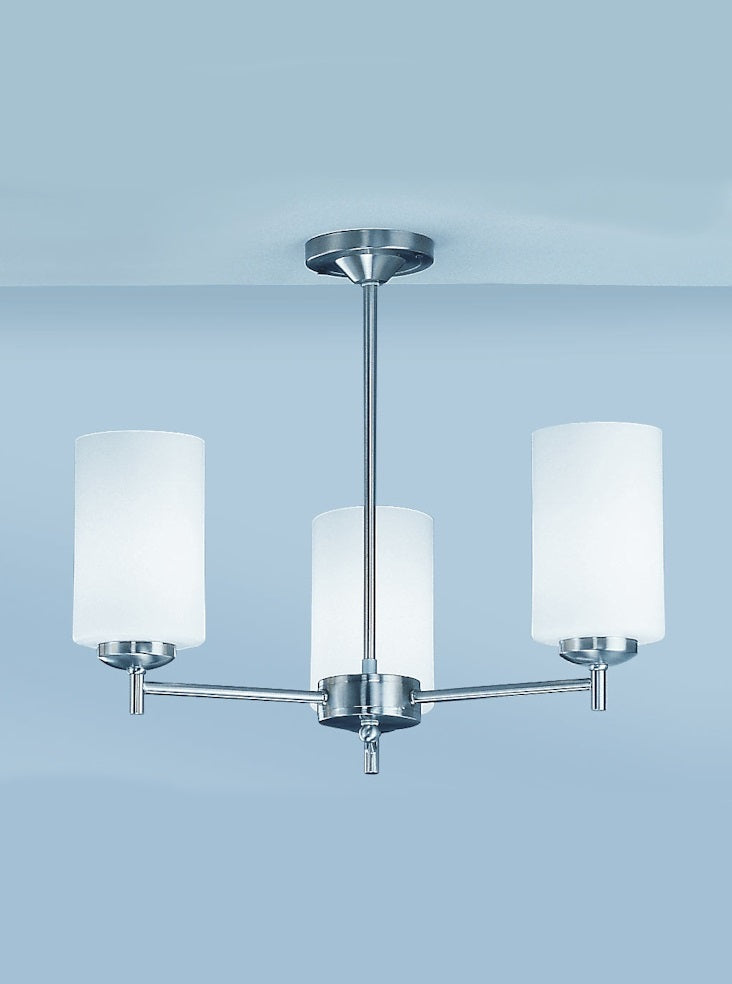 Satin nickel finish 3 light semi-flush fitting with opal cylinder glasses