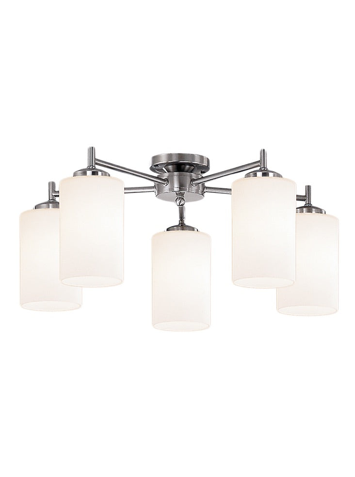 Satin nickel finish 5 light flush fitting with opal cylinder glasses