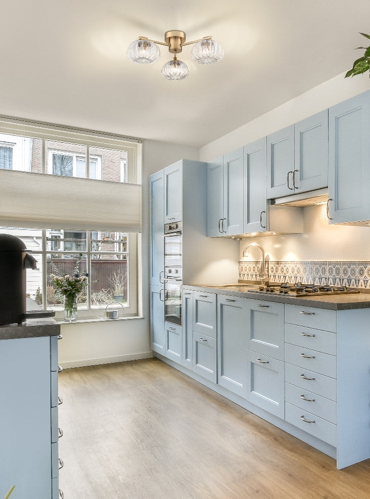 Aged brass finish 5-light flush ceiling fitting with clear ribbed enclosed glass with inverted base.