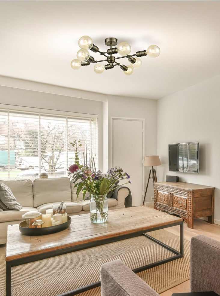 In antique brass finish. Designed for use with exposed decorative filament LED lamps.