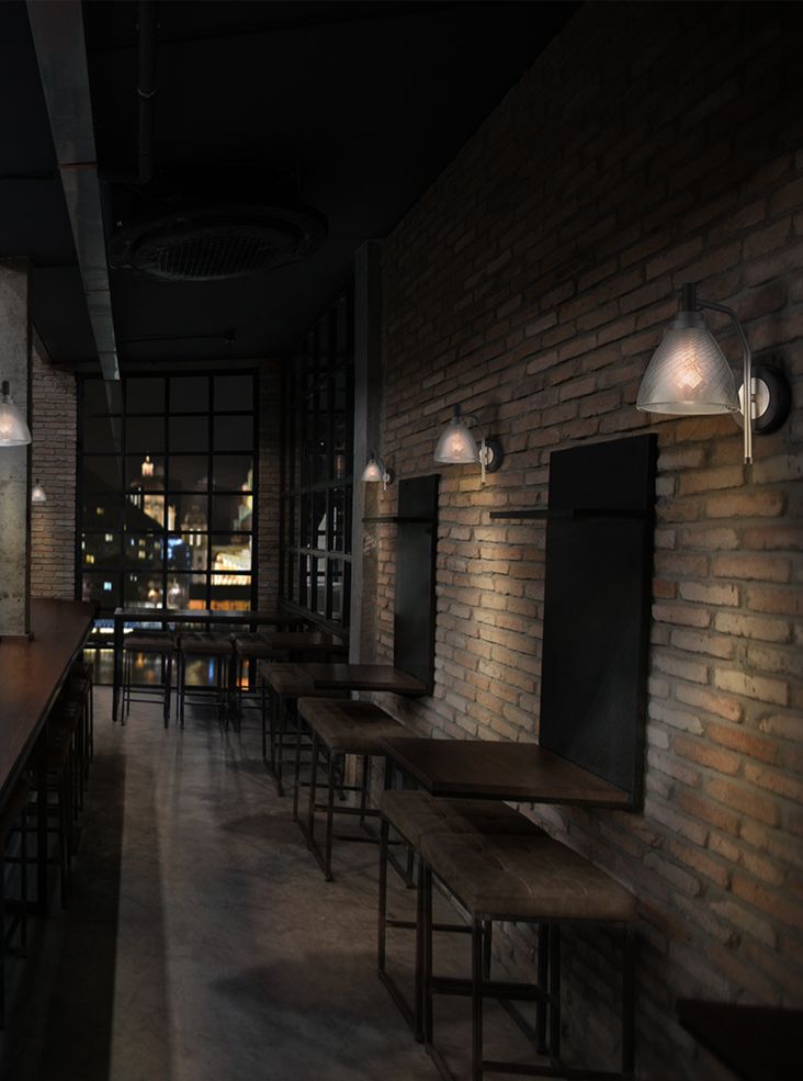 Matt black and satin nickel finish wall light with smoked glass featuring a modern subway tile design.