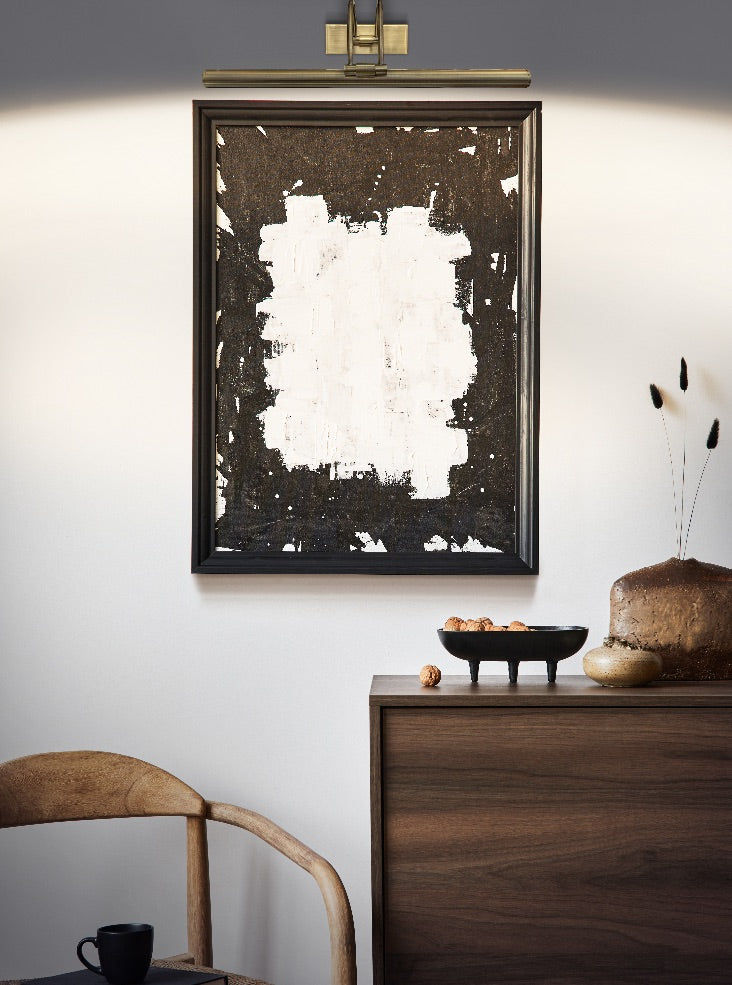 Aged brass finish LED picture lights. The head can be adjusted to direct the light source as required. Dimmable with a trailing edge dimmer.