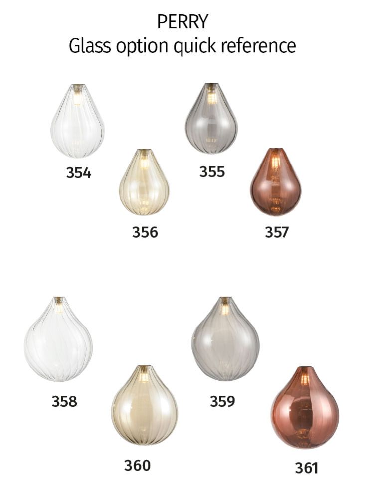 The pear-shaped glasses are lightly textured and come in four colours and two sizes with can be matching or inter-mingled for a unique combination. The cable lengths are adjustable on site prior to installation. OR