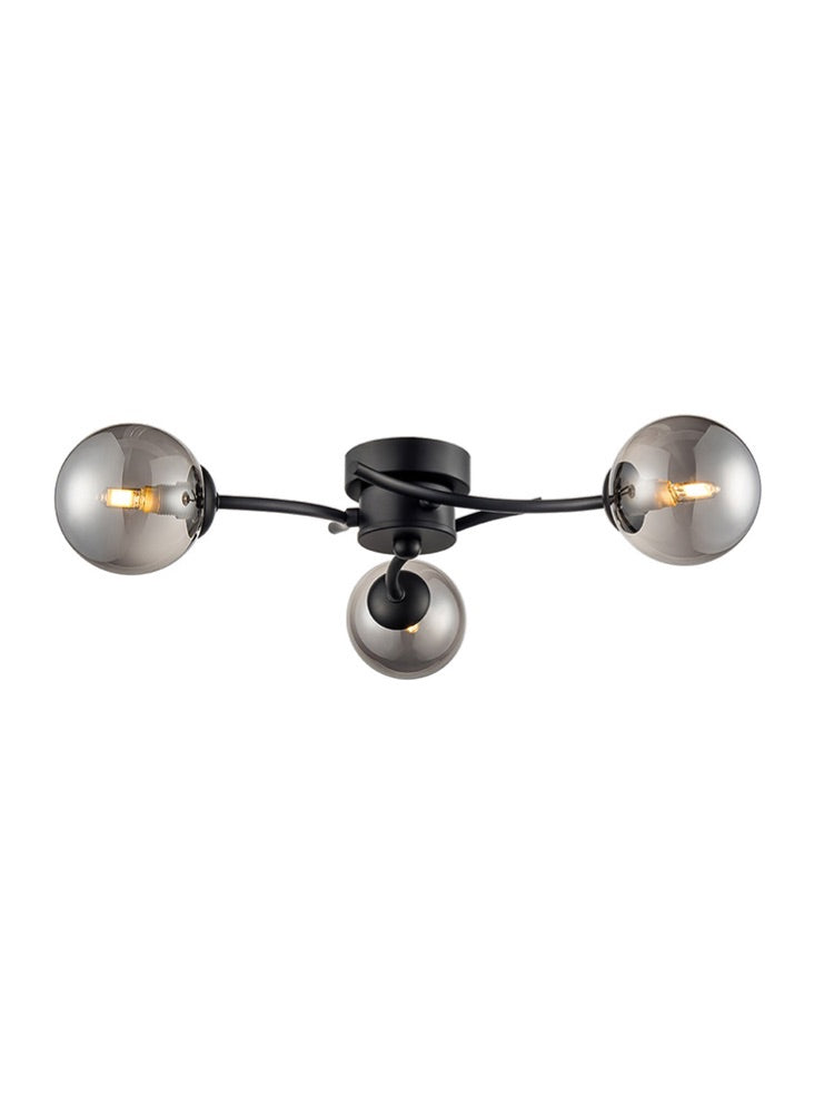 A 3-light semi-flush ceiling fitting, finished in matt black with smoke-coloured glass spheres. This fitting is suitable for low ceilings.