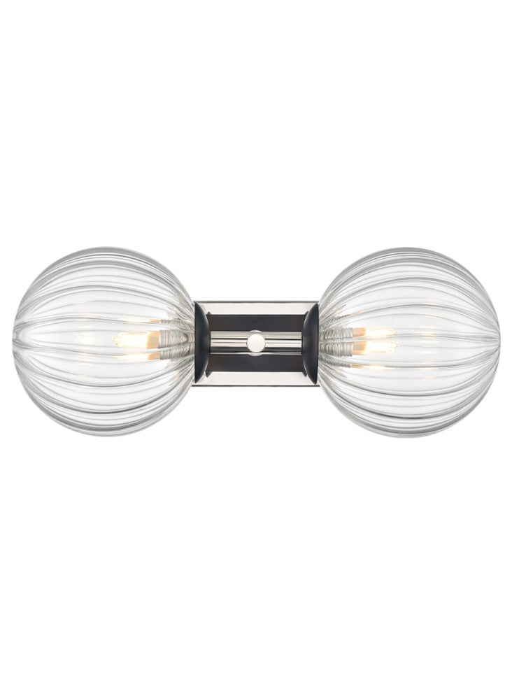 Double wall light in matt black and polished nickel with ribbed clear glasses. This versatile range comprises four colours and two designs of sphere glasses.