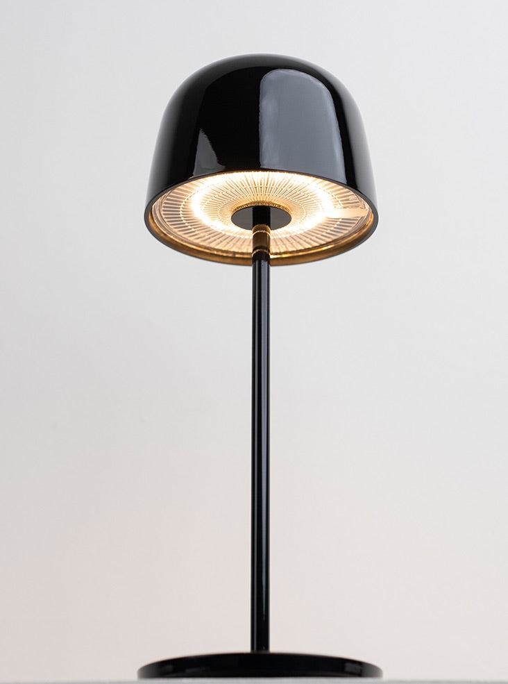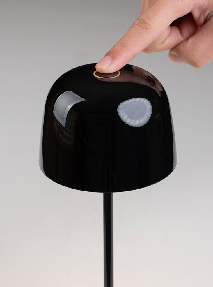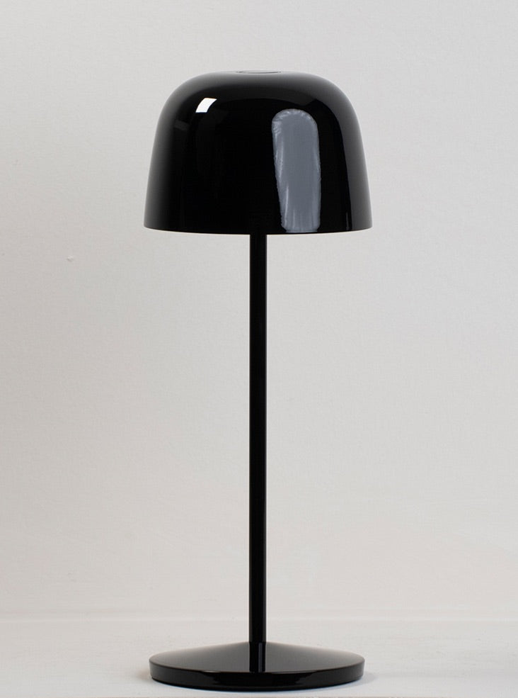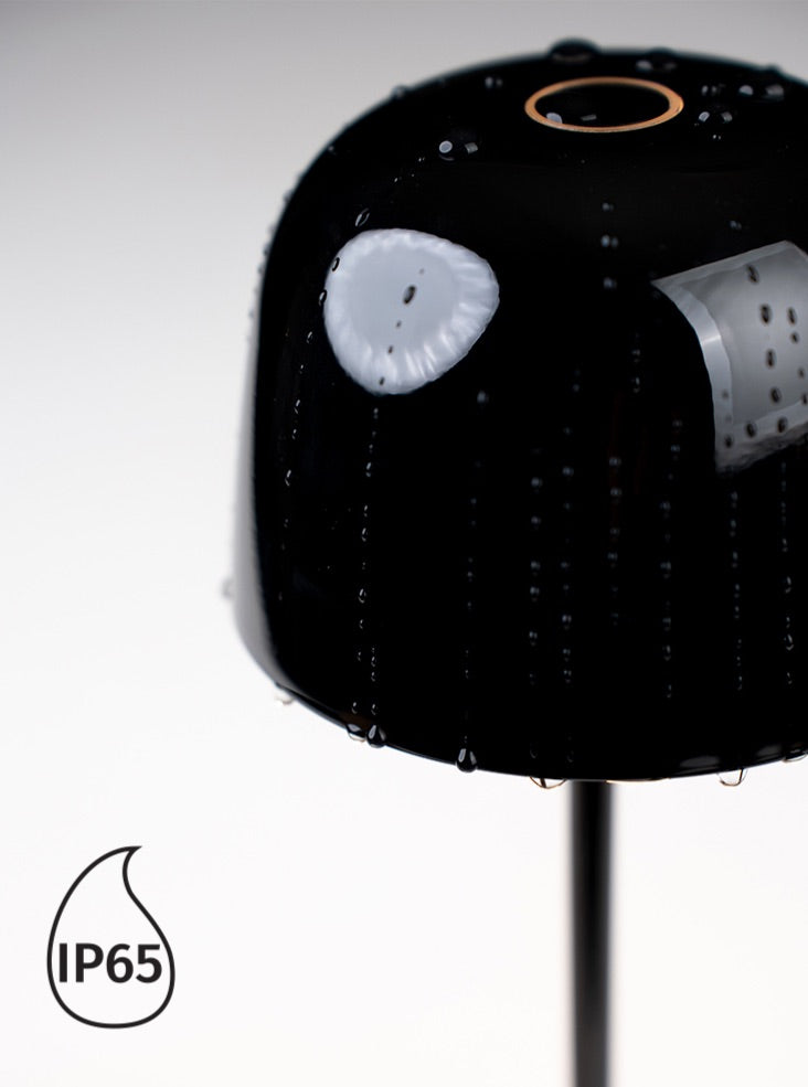 Cast aluminium portable table lamps finished in ceramic black finish. Controlled via a switch on the top of the shade. Featuring a dimmer setting memory function that memorises the dimming level. Charged with a USB Type-C cable. Rated IP65, these convenient lamps are suitable for interior and exterior use.