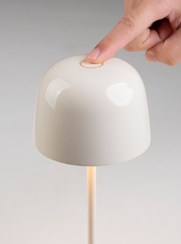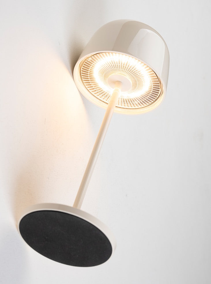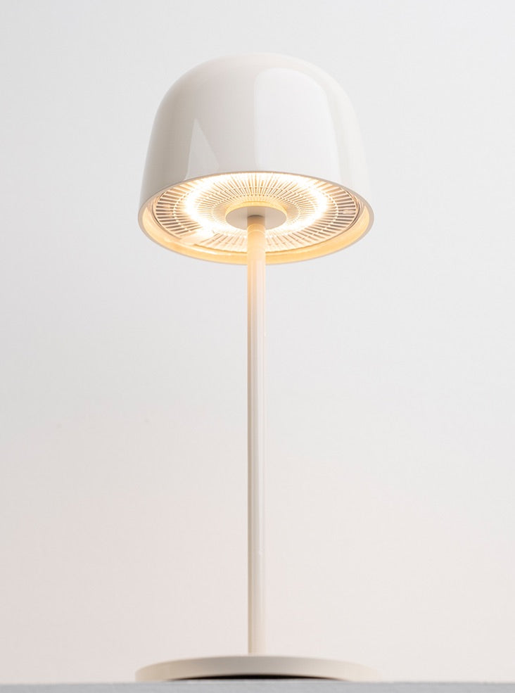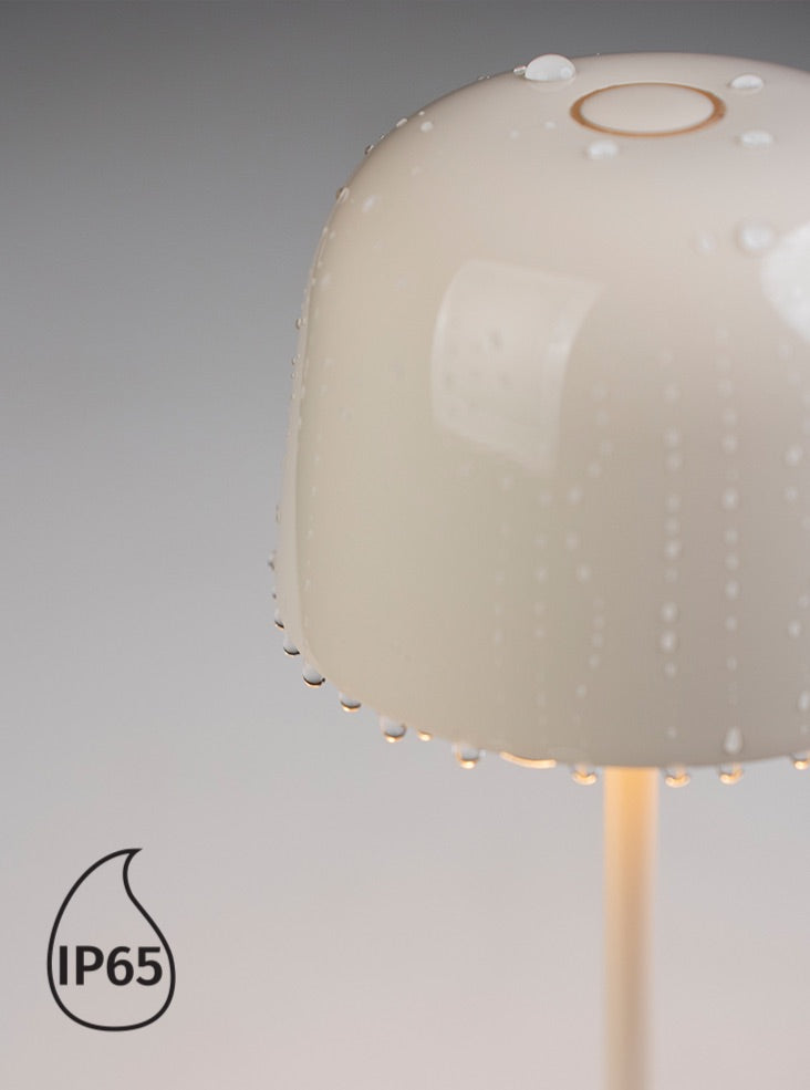 Cast aluminium portable table lamps finished in ceramic cream finish. Controlled via a switch on the top of the shade. Featuring a dimmer setting memory function that memorises the dimming level. Charged with a USB Type-C cable. Rated IP65, these convenient lamps are suitable for interior and exterior use. Non-dimmable.
