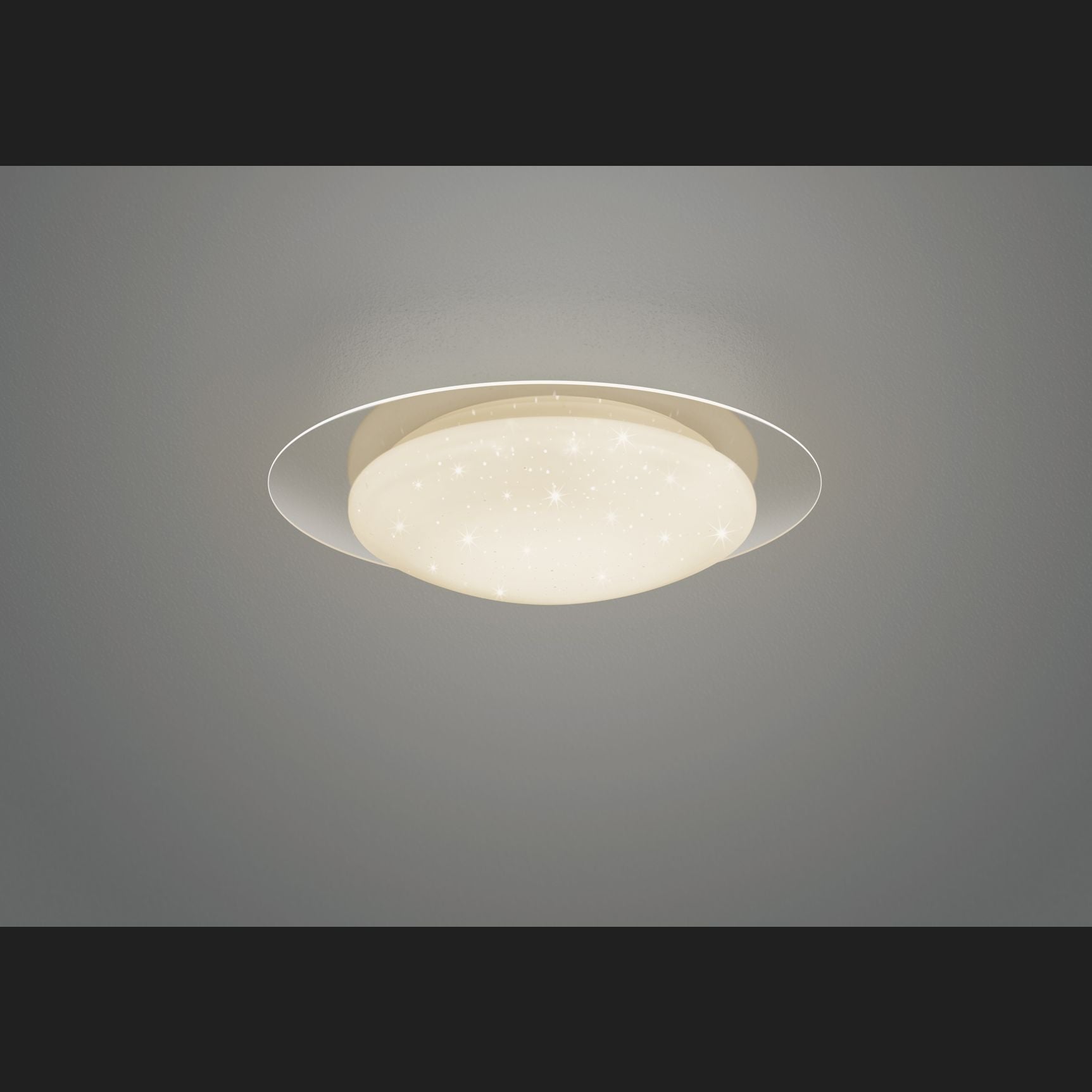 The modern FRODO ceiling light impresses with its simple design, allowing the light to take centre stage. Thanks to the practical additional function and eye-catching starlight cover, the light becomes an eye-catcher in your living space and provides pleasant illumination. The light intensity and light colour can be infinitely adjusted using a remote control, so that the lighting mood can be determined individually. Thanks to the simple white colour scheme with a clear edge, the ceiling light harmonises with modern furnishing concepts and can be easily combined with other colours. The luminaire also features modern LED technology, which is characterised by high light quality and energy efficiency. Compared to conventional halogen light sources, up to 80% of energy costs can be saved. LED light sources also have a long service life, produce less heat and protect the environment.