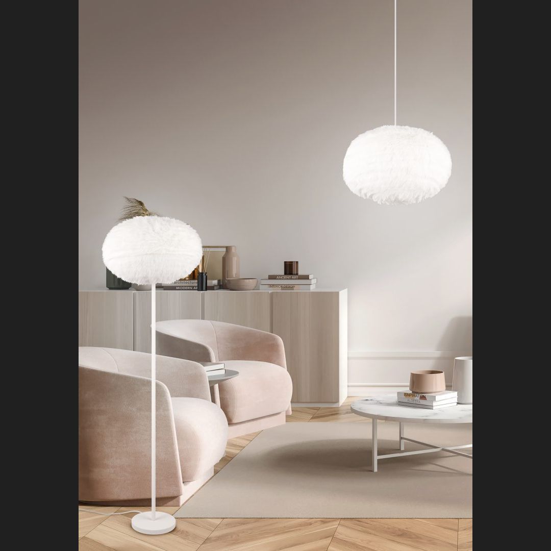 The FURRY pendant light impresses with its unusual design and its fluffy and cosy appearance. This special appearance is emphasised by the material used, synthetic plush, which makes the light a real eye-catcher on your ceiling. As an enchanting lighting object, it blends in particularly well in living areas with a youthful style. The sandy design enables effortless combination with different colour concepts, making integration into your home particularly easy. The use of LED light sources is recommended for energy-saving lighting. These are an ideal alternative to conventional halogen light sources and offer high light quality and energy savings of up to 80%. With LED light sources, you also benefit from a long service life and low heat generation while protecting the environment.
