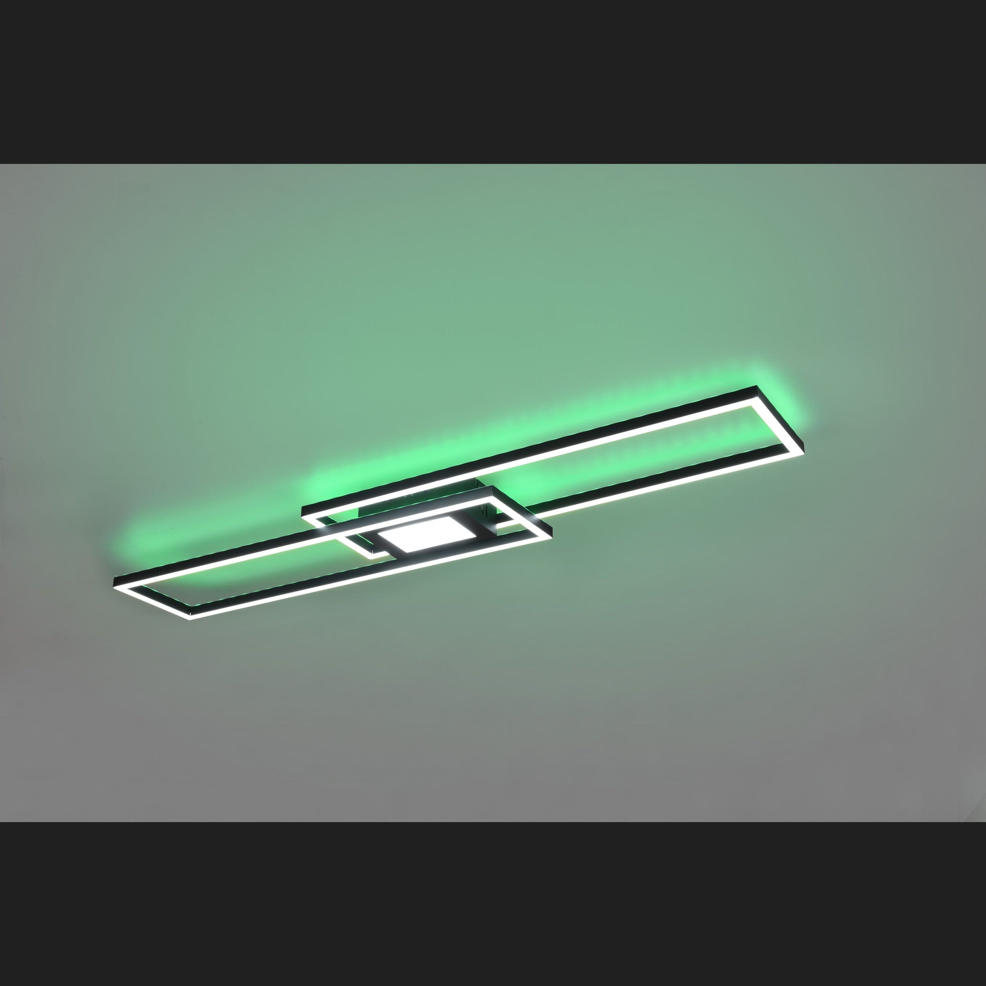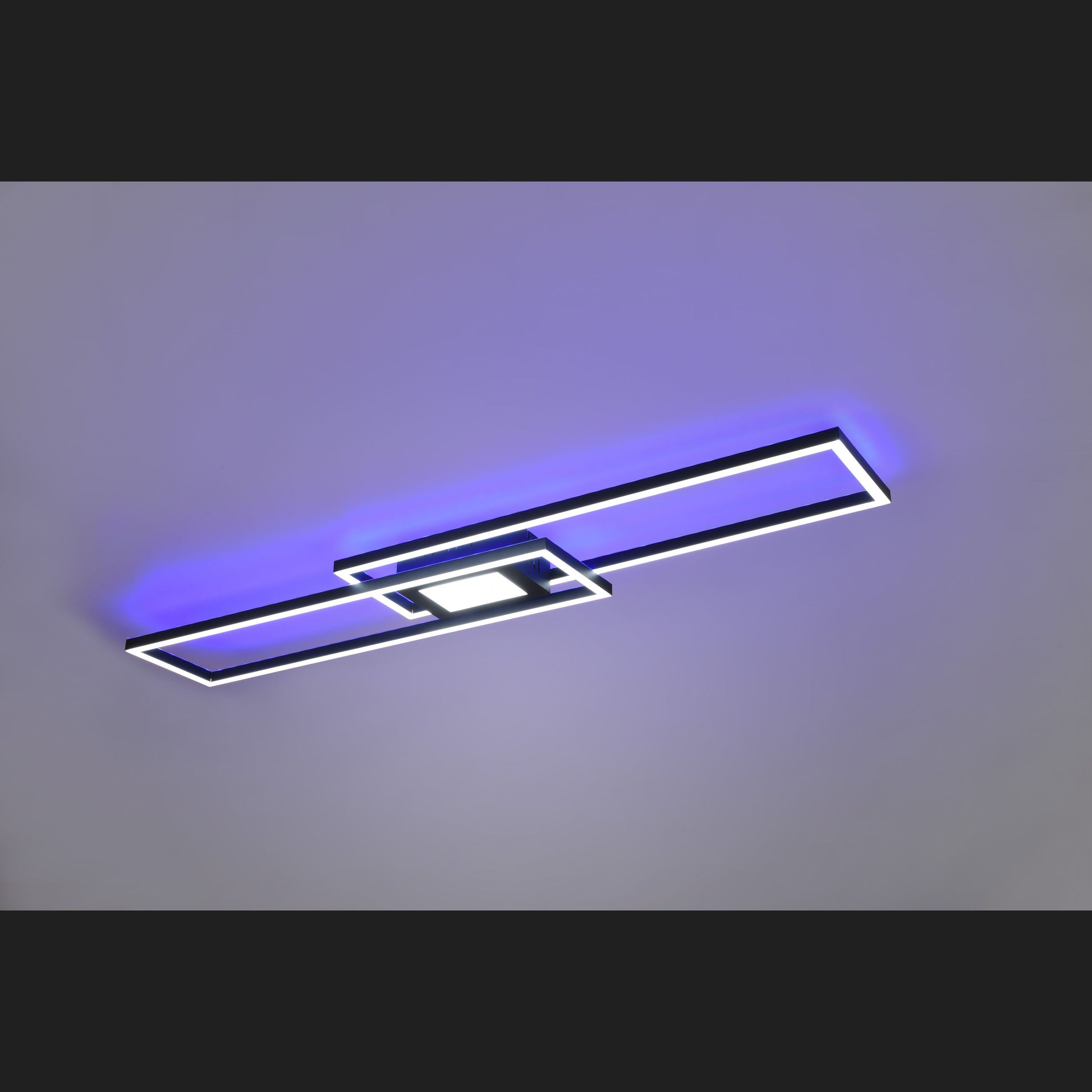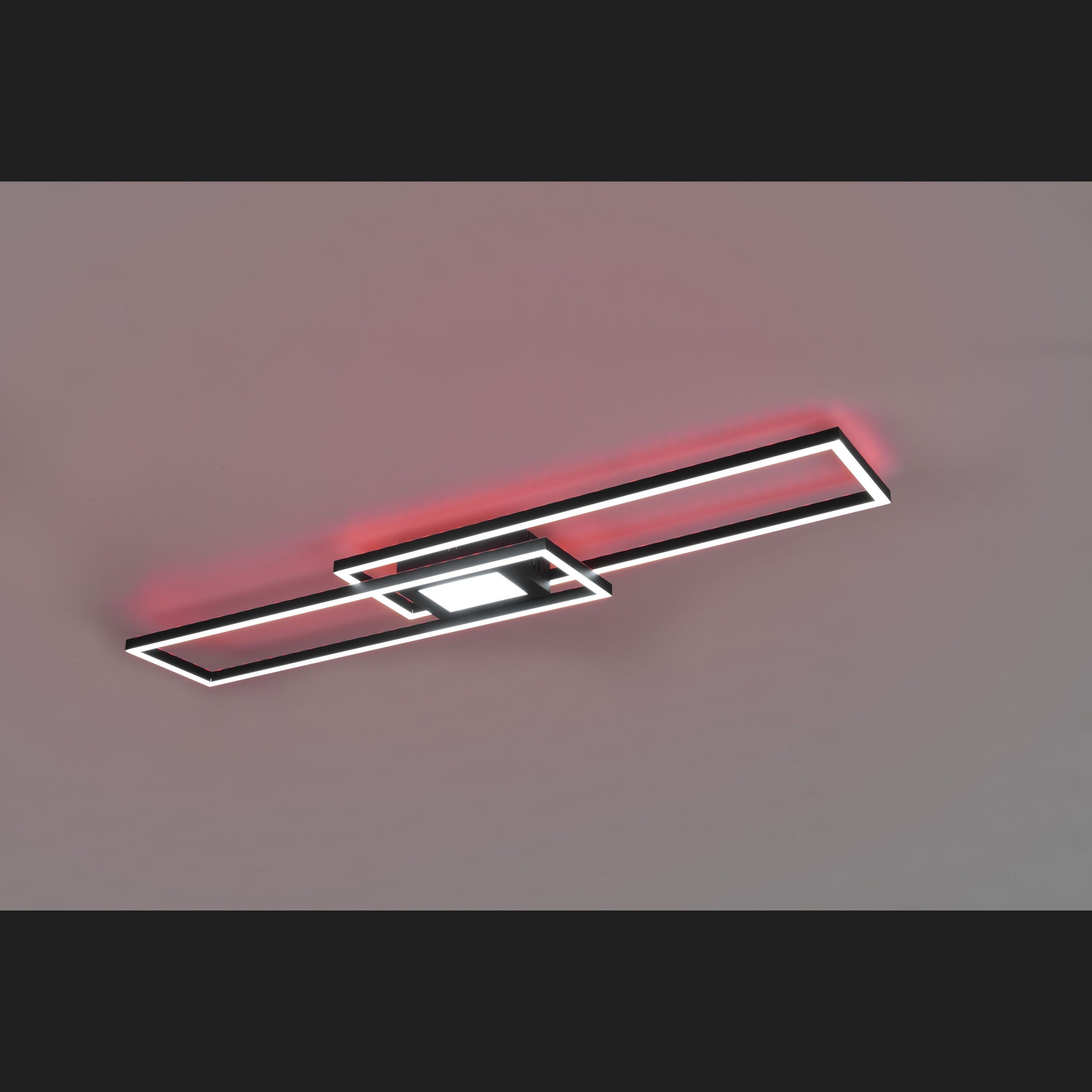 Lighting ideas with colour features. The LED luminaire GANADO creates the right light for every mood and situation. Differently aligned and clearly arranged, the light elements can be adjusted in brightness and light colour as desired. In addition, the separately switchable indirect lighting in RGB colours provides a pleasant lighting ambience. All settings can be conveniently controlled via a remote control. Due to the modern colouring in matt black, the luminaire can be easily combined with existing furniture. In addition, the luminaire features modern LED technology, which is characterised by high light quality and energy efficiency. Compared to conventional halogen lamps, up to 80% of energy costs can be saved. In addition, LED light sources have a long service life, produce less heat and protect the environment.
