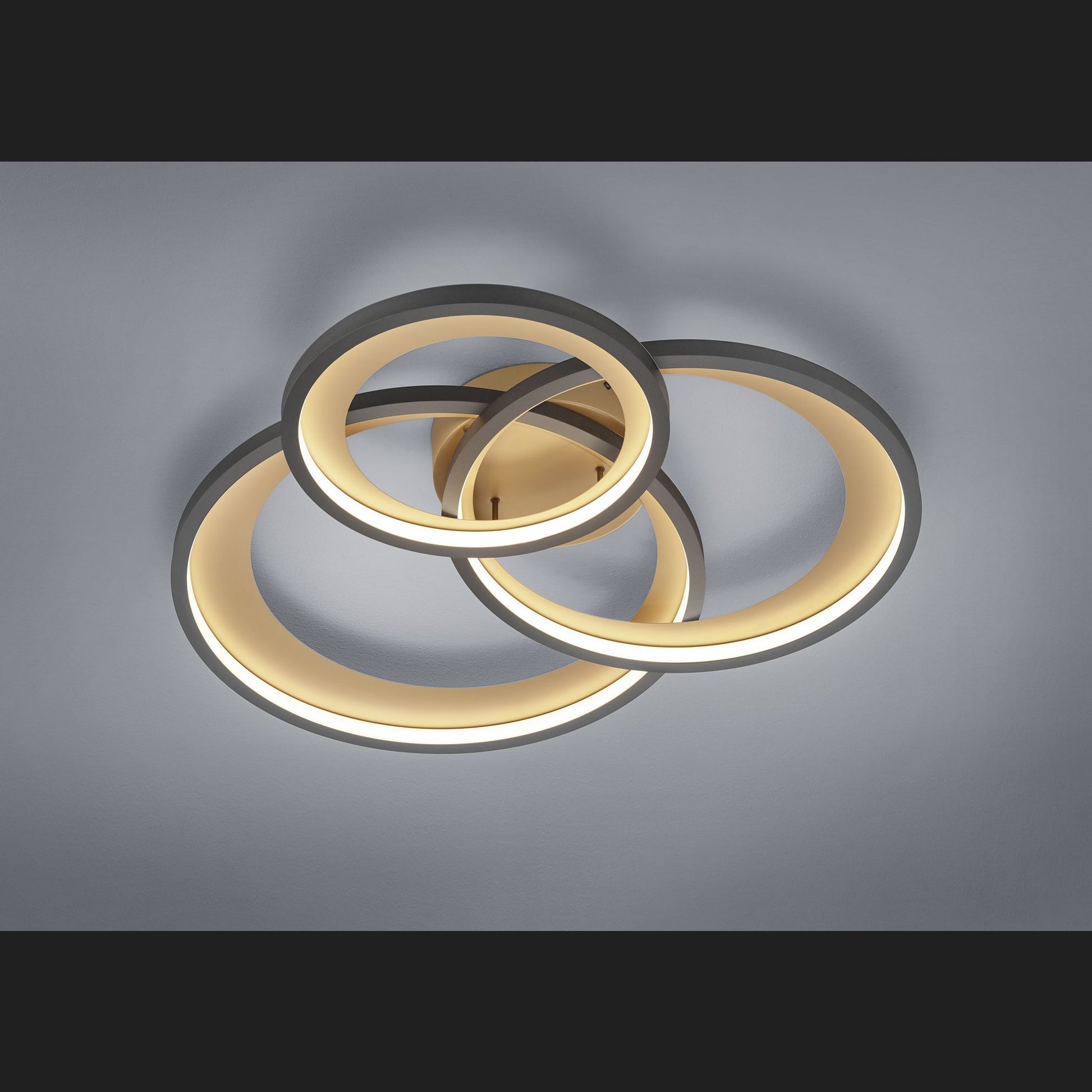 GRANADA – an effective eye-catcher. The two-colour concept adapts to modern furnishing and colour worlds and provides pleasant lighting. It has a SWITCH dimmer which can be used to control three brightness levels using a conventional light switch. The black/gold colour scheme allows shiny highlights to be added to the ceiling. The kicker: The light appears particularly warm and cosy. In addition, the luminaire features modern LED technology, which is characterised by high light quality and energy efficiency. Compared to conventional halogen lamps, up to 80% of energy costs can be saved. In addition, LED light sources have a long service life, produce less heat and protect the environment.