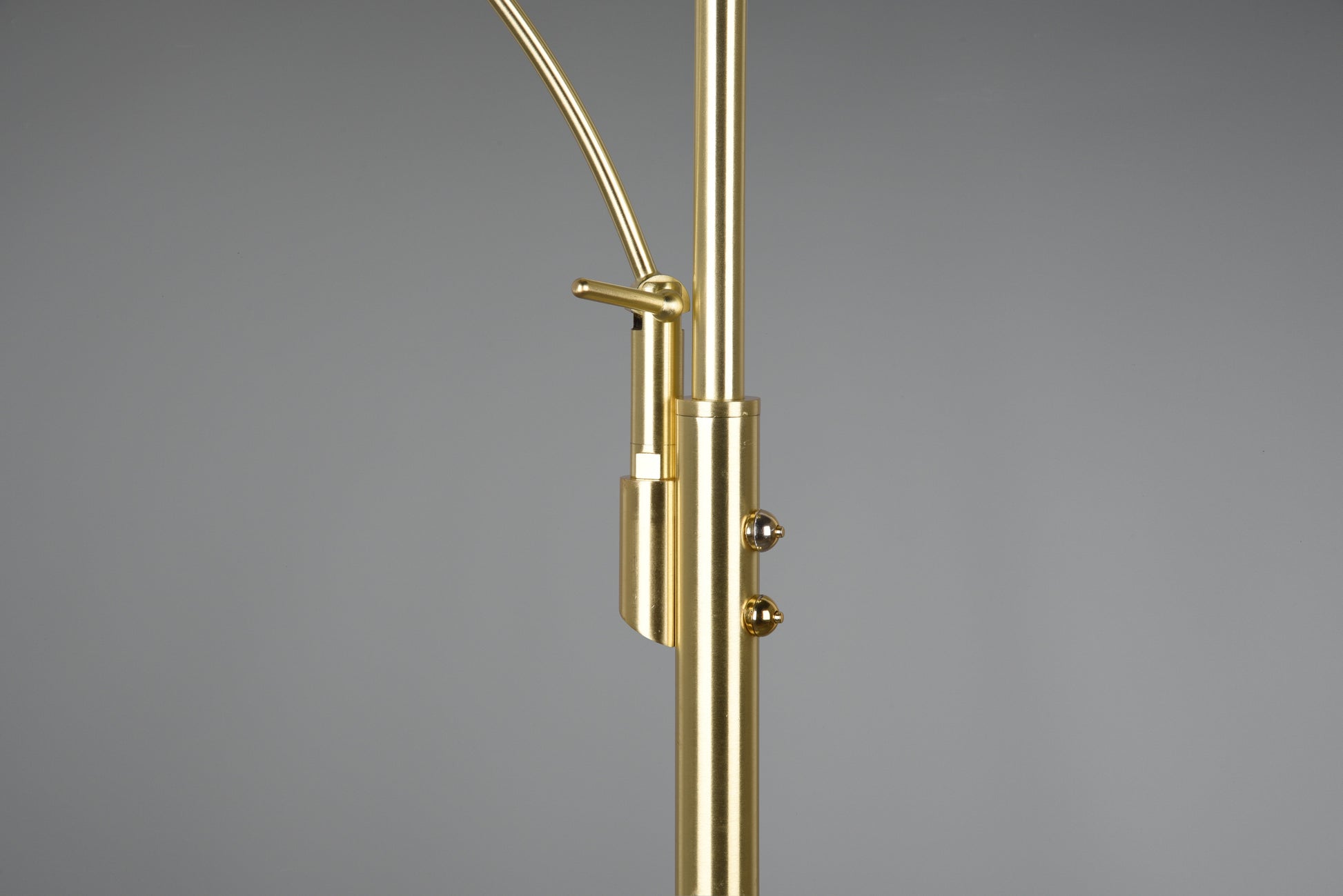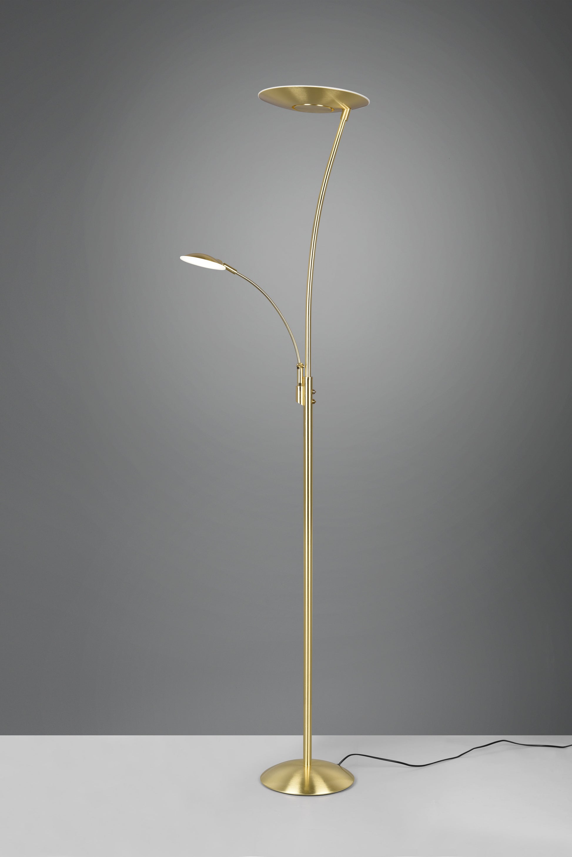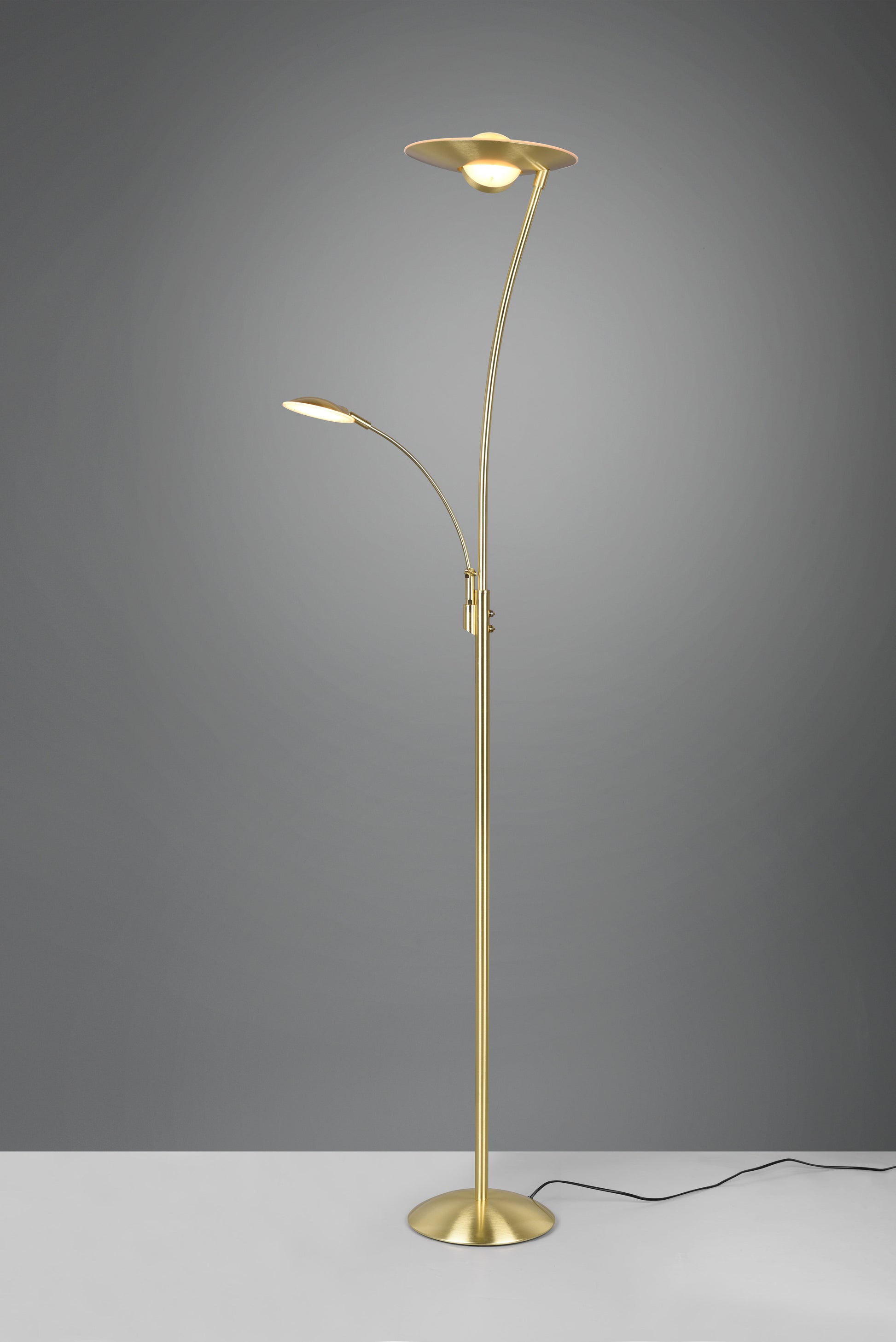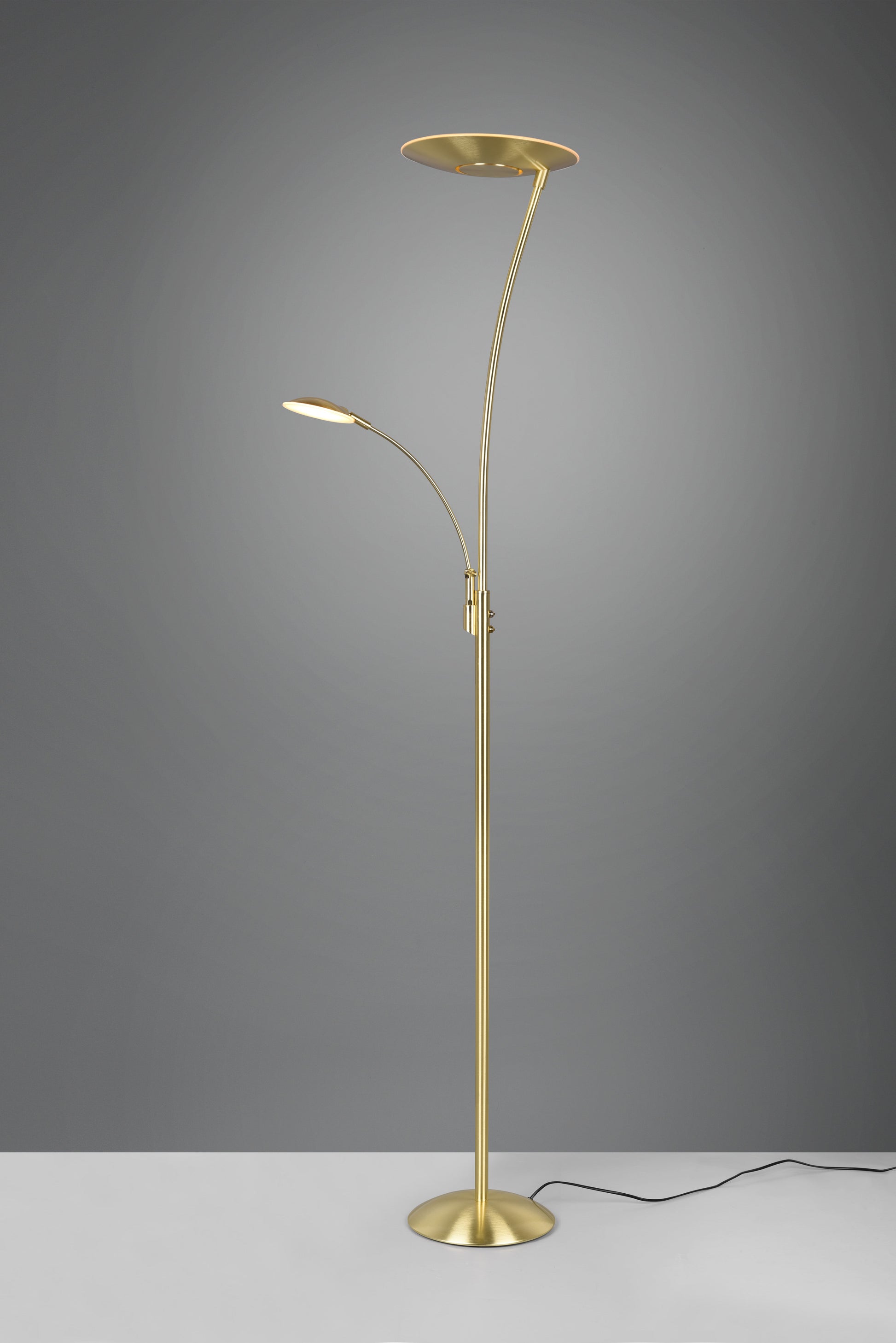 The futuristic appearance of the GRANBY floodlight attracts all eyes and brings cosiness into your home. Placed next to the desk or the sofa, you create special light accents and a pleasant ambience. Brightness and light colour can be easily dimmed and adjusted via an integrated sensor dimmer. The main light source can also be switched separately from the reading arm so that you can use the light you need individually. The integrated memory function automatically resets the last set lighting scenario. The metal in matt brass stands for timelessness and modernity and can also be combined well with other colours and materials. In addition, the luminaire features modern LED technology, which is characterised by high light quality and energy efficiency. Compared to conventional halogen lamps, up to 80% of energy costs can be saved. In addition, with LED lamps you benefit from a long service life, low heat generation and protect the environment at the same time.