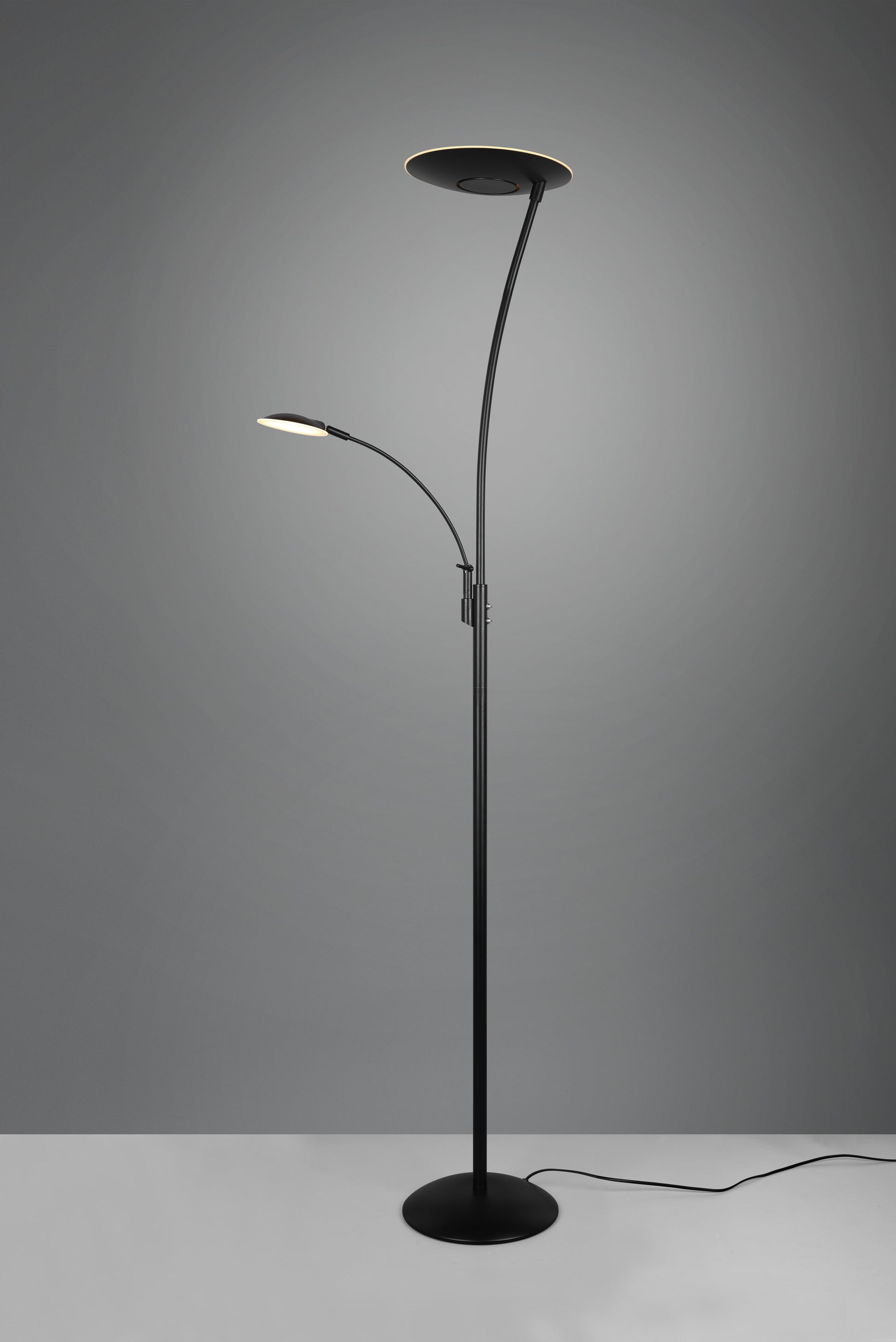 The futuristic appearance of the GRANBY floodlight attracts all eyes and brings cosiness into your home. Placed next to the desk or the sofa, you create special light accents and a pleasant ambience. Brightness and light colour can be easily dimmed and adjusted via an integrated sensor dimmer. The main light source can also be switched separately from the reading arm so that you can use the light you need individually. The integrated memory function automatically resets the last set lighting scenario. The metal in matt black stands for timelessness and modernity and can also be combined well with other colours and materials. In addition, the luminaire features modern LED technology, which is characterised by high light quality and energy efficiency. Compared to conventional halogen lamps, up to 80% of energy costs can be saved. In addition, with LED lamps you benefit from a long service life, low heat generation and protect the environment at the same time.