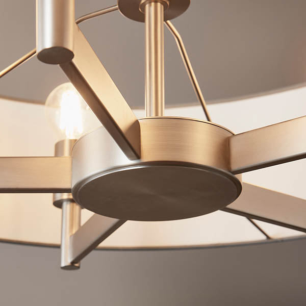 Introduce a refined elegance to your interior with this pendant light featuring a matt nickel finish and stylish, grey fabric. With its clean lines and pared-back look, this highly versatile, five-arm pendant has a pleasing symmetry and welcome simplicity.