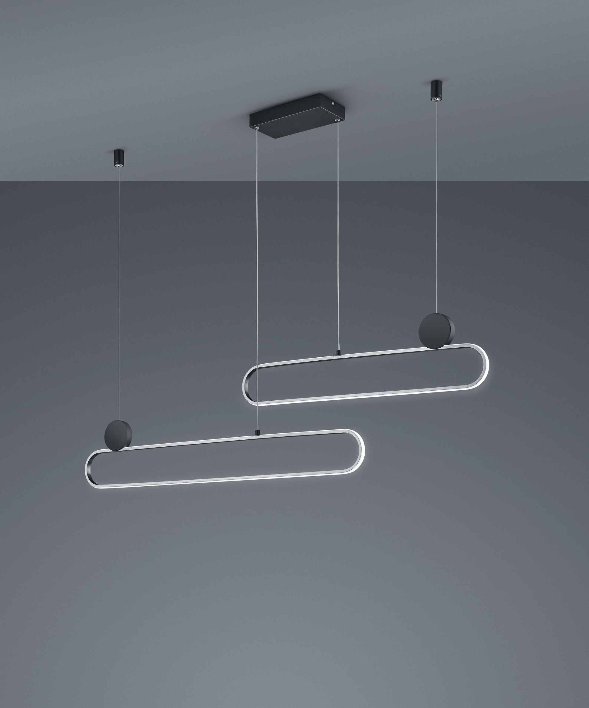 The GRANT pendant luminaire presents itself puristic and absolutely modern. The two stylish light rings make the luminaire an eye-catcher in your home and complement clear, minimalist living styles. The luminaire has a SWITCH dimmer, allowing the brightness to be graduated from 100% to 50% and 25% via a conventional light switch. In addition, three light colours (warm white, neutral white and daylight white) can be set via a switch directly on the luminaire. Placed centrally above the dining table, the luminaire in matt black and brushed aluminium enhances your living area. In addition, the luminaire features modern LED technology, which is characterised by high light quality and energy efficiency. Compared to conventional halogen lamps, up to 80% of energy costs can be saved. In addition, LED light sources have a long service life, produce less heat and protect the environment.