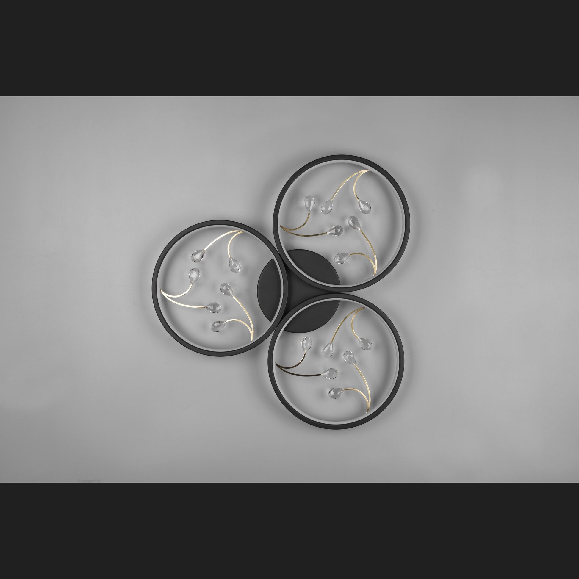 The three light circles of the GROOVY ceiling light conjure up that certain something in your living area. The fine glass elements within the circles provide an elegant touch and become a true decorative element on your ceiling. An integrated SWITCH dimmer allows the brightness of the built-in LEDs to be regulated in three stages via a light switch. The perfectly shaped look in matt black blends into many interior styles thanks to its simplicity. In addition, the luminaire features modern LED technology, which is characterised by high light quality and energy efficiency. Compared to conventional halogen lamps, up to 80% of energy costs can be saved. In addition, LED lamps help you benefit from a long service life, low heat generation and at the same time protect the environment.
