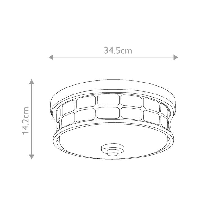 The Guardian 3lt flush light features a beautiful geometric cage in a Painted Natural Brass finish with an Opal glass shade. IP44 bathroom rated.