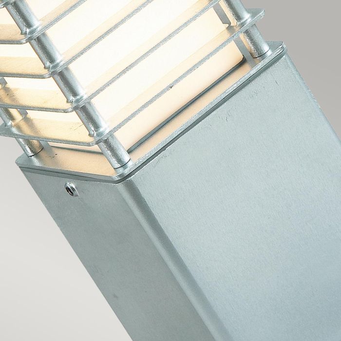 Halmstad small bollard by Norlys is constructed with galvanised steel and has an opal polycarbonate diffuser. It is IP65 rated is suitable to use on the coastline with a 8 year warranty.