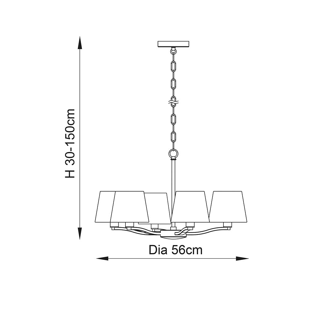 The Harvey 5 light pendant is finished in bright nickel plate and complemented by vintage white, faux silk shades each with metallic silver inner, for the perfect sophisticated boutique hotel look. Matching items also available.