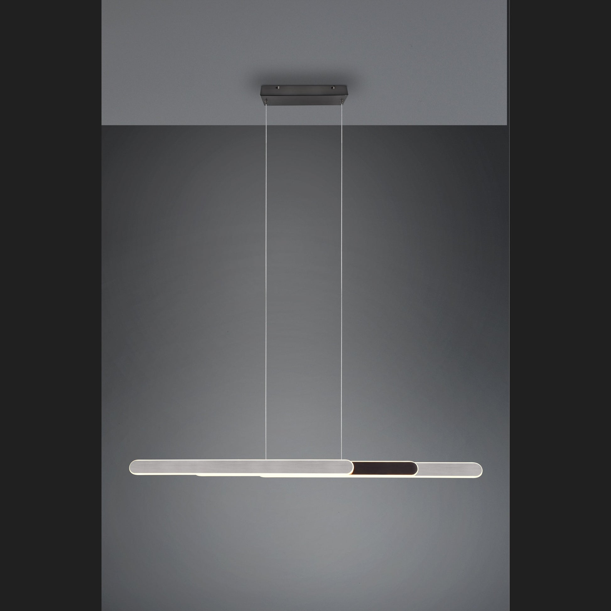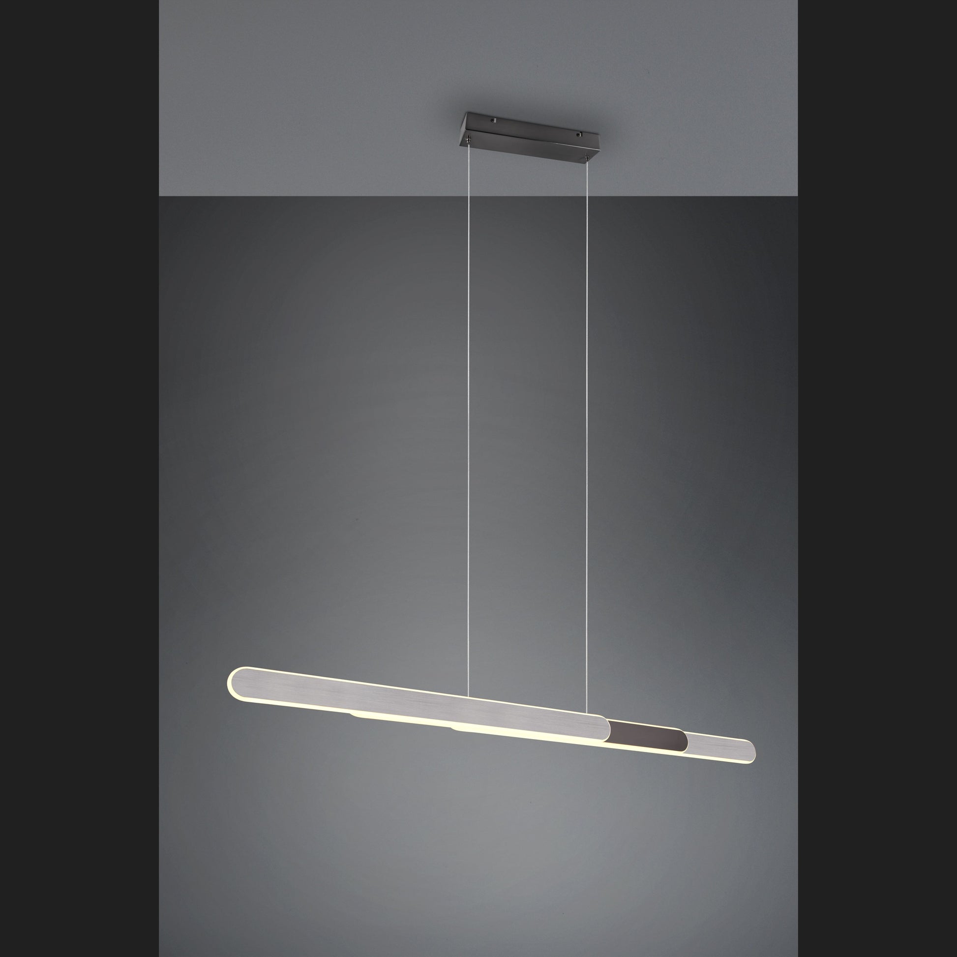 The HELIOS pendant light will be the centrepiece of your dining area. The clear and modern lines of the light bring a stylish flair to your home, which is emphasised by the up and down lighting. As the HELIOS is height-adjustable and can be easily pulled apart, it is ideal for extendable dining tables. Another highlight is the integrated 4-fold touch function. Both the brightness levels and the light colour can be adjusted as required at the touch of a button. The colour design in brushed aluminium and black chrome is a real eye-catcher in your furnishing concept. The luminaire also features modern LED technology, which is characterised by high light quality and energy efficiency. Compared to conventional halogen light sources, up to 80% of energy costs can be saved. With LED light sources, you also benefit from a long service life and low heat generation while protecting the environment.