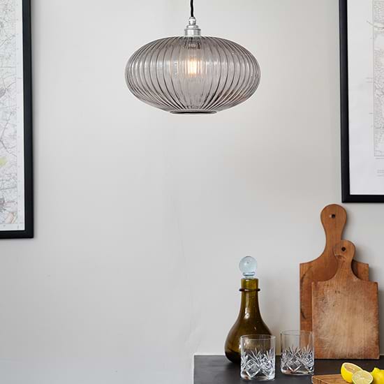 The charming Henley Ellipse glass in Smoked Grey brings a subtly dramatic feel to any space. The traditional handblown fluted glass casts delicate and subtle light on its surroundings.Our exquisite Soho Glass Library delivers excellence with a beautiful choice of light fittings, each meticulously crafted in a range of stunning finishes, available in a 1.5m drop cable to lend individual character and style to your interior.