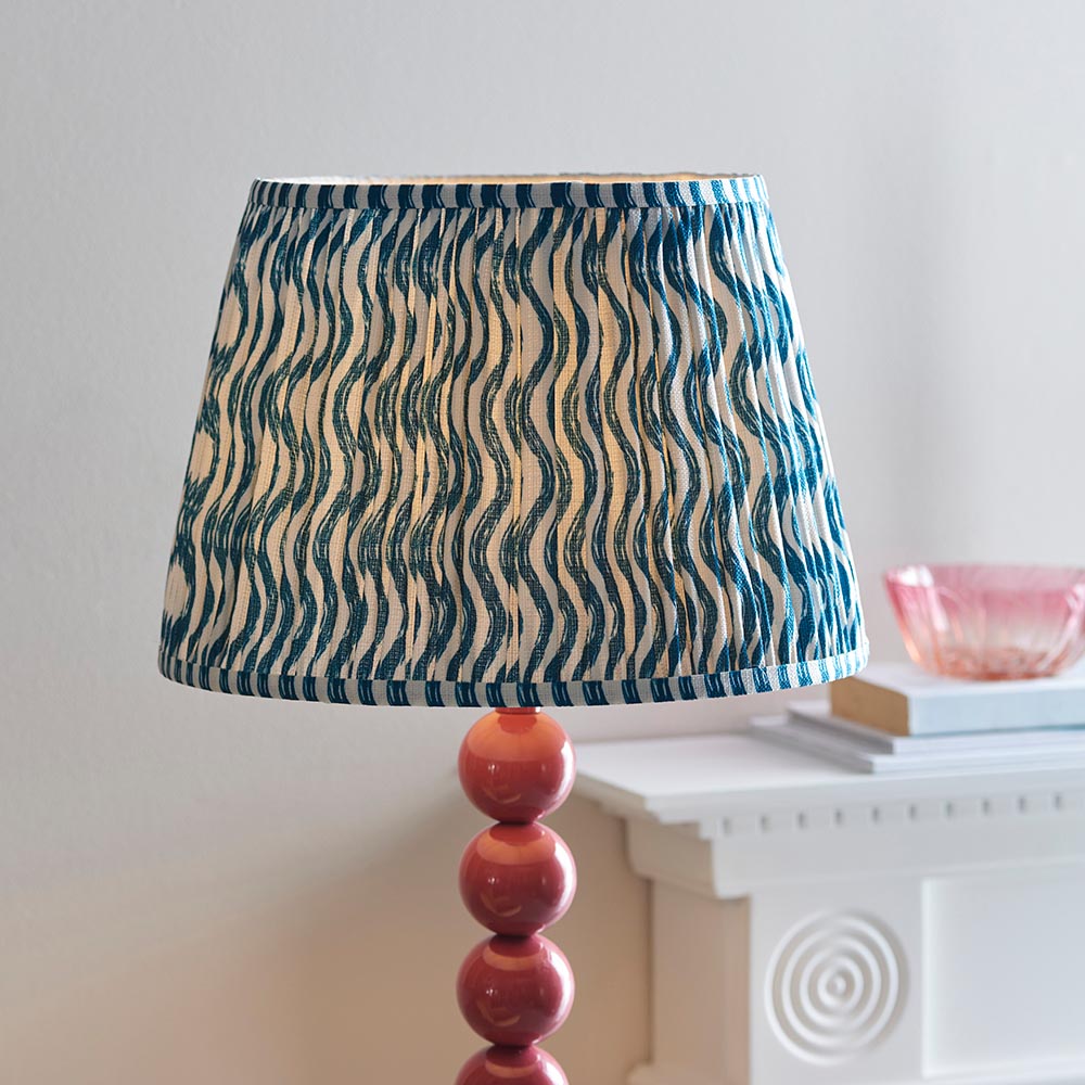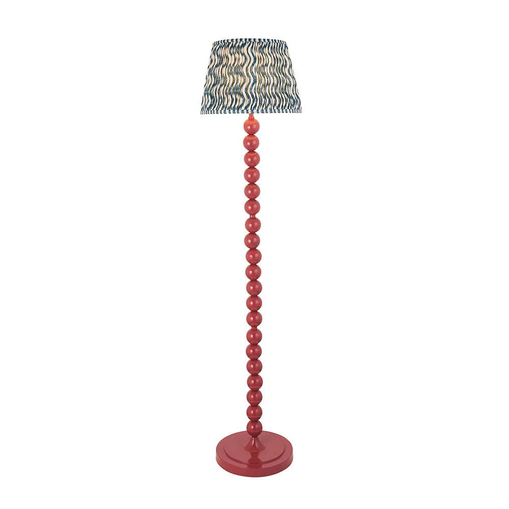 Add some colour to your home with this playful floor light. Multiple stacked metal spheres are finished in gloss pink clay paint with an E27 lamp holder, in-line foot switch and colour matched fabric flex. Paired with our vibrant marlin blue 35cm Ripple shade to complete this perfect colour addition to your home.