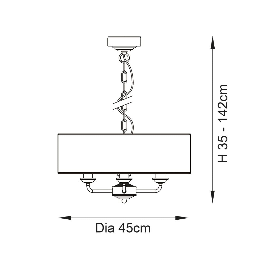 - Height adjustable 1.2 metre antique brass chain and black flex